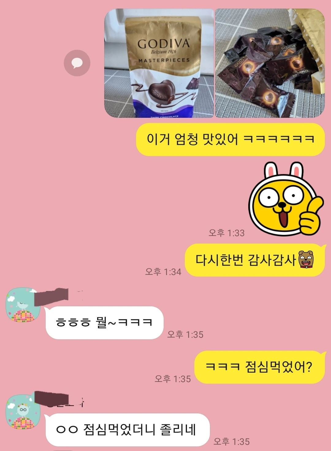 암튼 오빠 덕분에 맛있는 초콜릿을 당분간 마음껏 먹을 수 있게 되었다. 참 기쁘다. 참 고맙다.