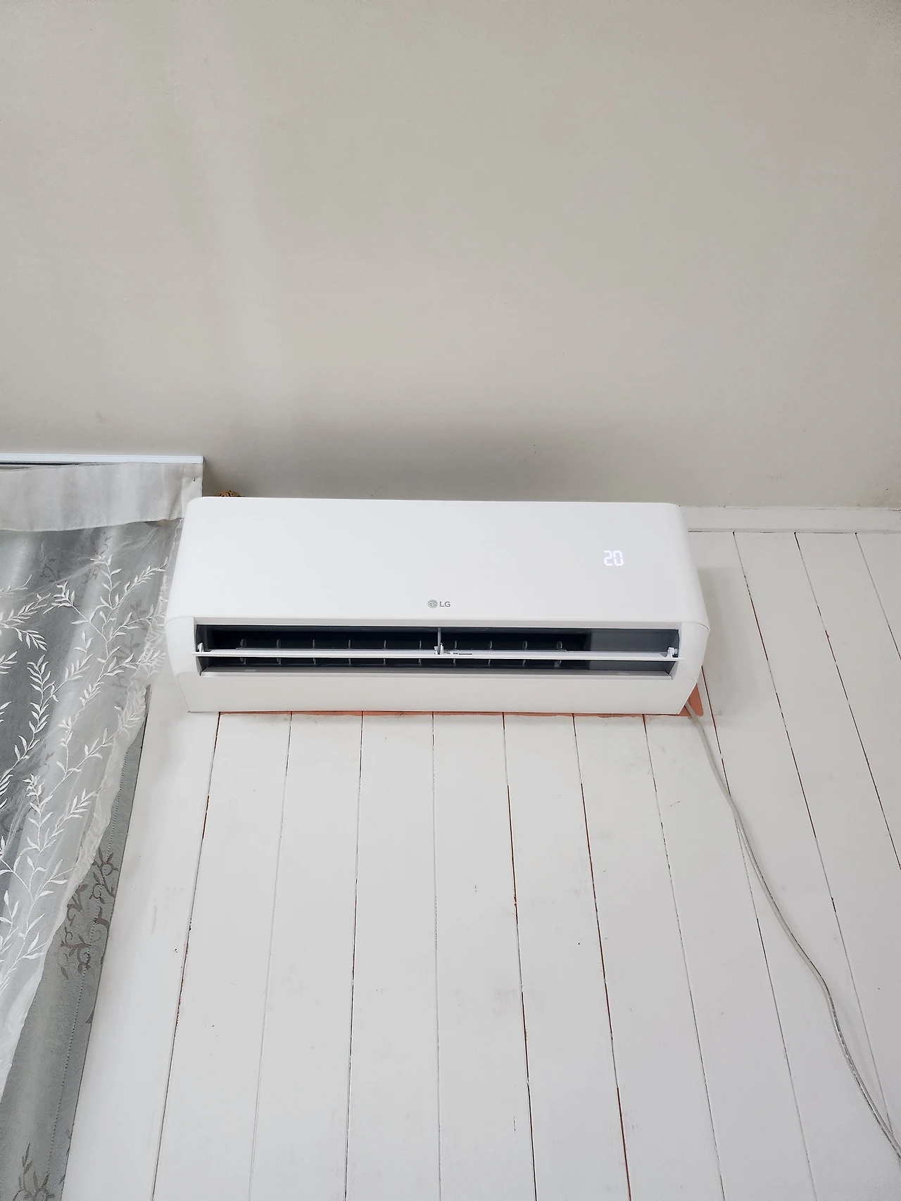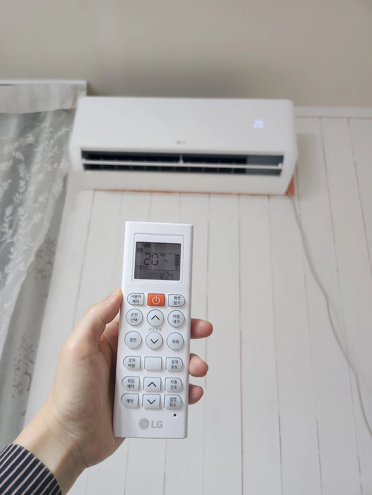 그렇게 에어컨은 새로 설치되었다. 깨끗하고 하얀 에어컨이다. 무려 자동건조도 되는 신형 에어컨이다. 이전에 에어컨 리모컨은 전에 살던 세입자 강아지가 물어뜯었는지 꼬질했는데 리모컨도 새것이라 좋다. 잠시나마 에어컨을 설치할까 고민했던 것이 무색할 정도로 좋았다.