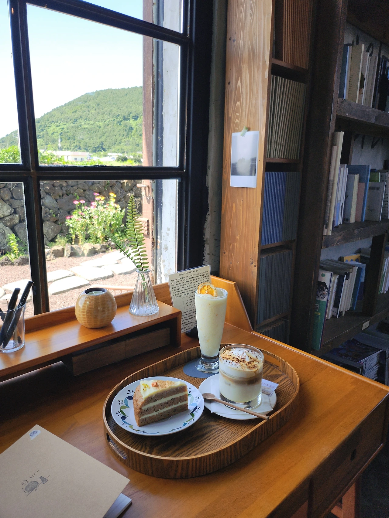 다녀온 곳은 '종달리 ㅇㅇㅇ' 북카페이다. 제주도에서 북카페라니 정말 낭만이 넘치는 것 같다. 책이 가득 있는 카페라 마음껏 꺼내 볼 수 있다니 정말 좋았다. 북카페라서 커피 맛이나 디저트는 기대하지 않았는데, 정말 맛있었다.