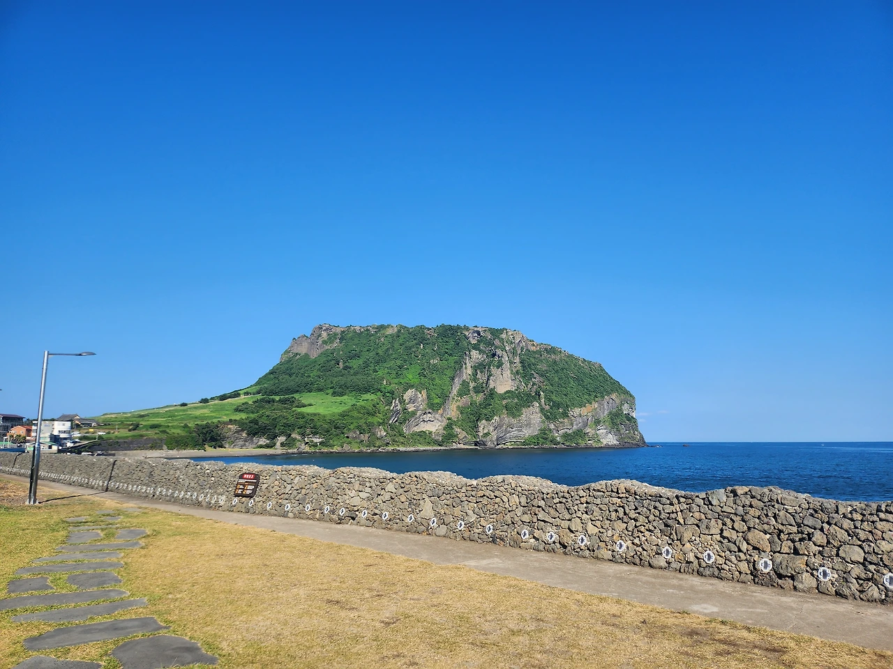 종달리에서 잘 놀고 그대로 세화나 월정리로 갔어야 했다. 아직 한낮에는 물놀이를 해도 될 것 같은 날씨이기 때문이다. 남편이 북카페를 다녀온 후 갈 물놀이장소를 검색했는데, 성산 쪽이었다. 성산 쪽이어도 물놀이만 할 수 있다면 괜찮겠는데... 하필 간 곳이 광치기 해변이었다.