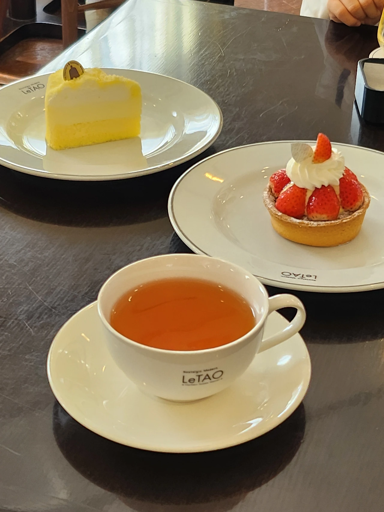 그곳에서 유명한 디저트 카페 본점을 가게 되었다. 그리고 차와 디저트를 주문해서 먹었는데 계절과 차와 디저트의 조합이 환상인 것이다. 그래서 그곳에서 파는 차를 구경하게되었고 자연스럽게 찻잎을 사게 되었다.