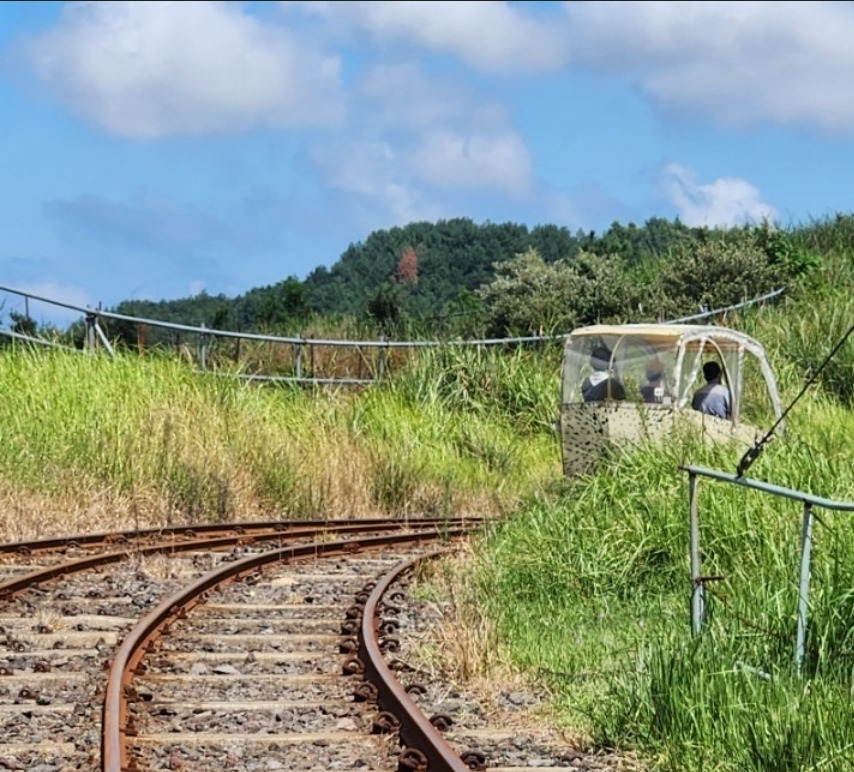 이전에 속리산에 작은 레일바이크를 타러 갔었는데 수동으로 굴러야 했다. 짧은 거리였는데 다 타고나니 다리가 아파서 한참을 고생했다. 그래서 제주 레일바이크도 수동으로 타는 곳일까 봐 쉽게 올 수 없었다. 그러나 요즘 우리는 오름에 오르며 조금 훈련했기 때문에 약간의 각오가 되어있었다. 하지만 다행히도 자동 레일바이크였다. 그냥 의자에 앉기만 하면 레일바이크를 탈 수 있었다. 정말로 편했고 어쩌면 조금은 시시했다.