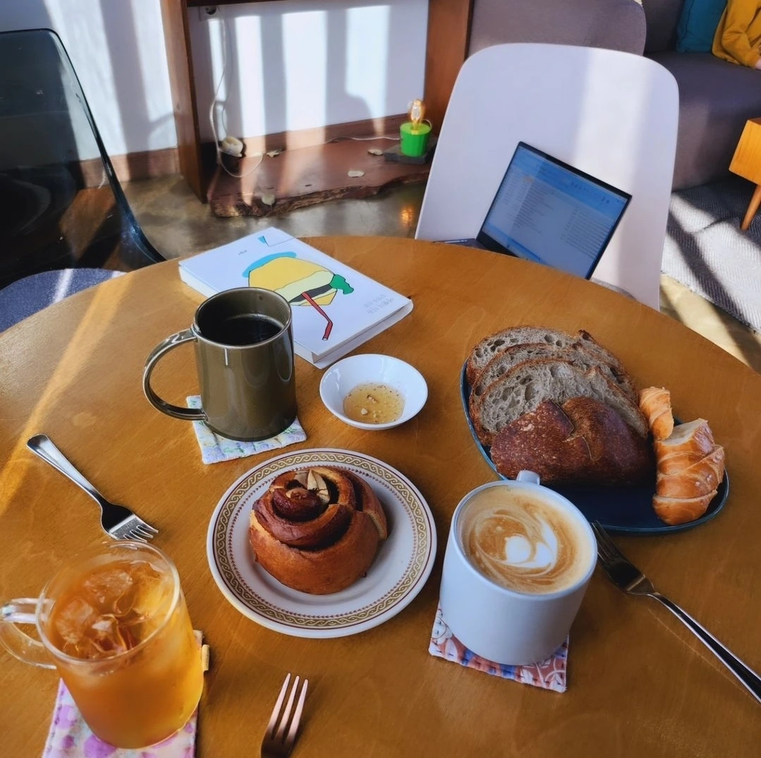 가까운 거리에 있어서 금방 도착했다. 다양하고 맛있는 빵이 가득 팔고 있었다. 빵을 몇 가지 고르고 음료를 골랐다. 아주 좋은 선택이었다. 계산하며 책을 보고 찾아왔다고 말씀드렸다. 아주 기뻐하셨다. 원래 그런 말을 잘하지 않는데 왠지 모를 용기였다. 아니, 책을 내신 작가님께 인사드리고 싶었다는 것이 맞았겠지!
