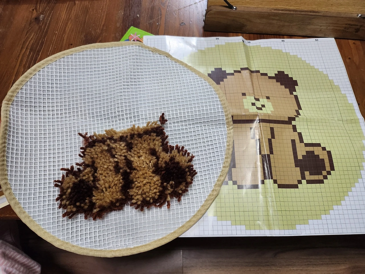 어려울 것이 하나 없었다. 하나씩 하나씩 실을 넣기 시작했다. 도안이 따로있는 방석이었지만 처음 자리만 잘 잡으면 그대로 하면 되니 어려울 것이 없었다. 매일 밤마다 조금씩 만들기 시작했다. 어느새 점점 방석의 모양이 나타나기 시작했다.