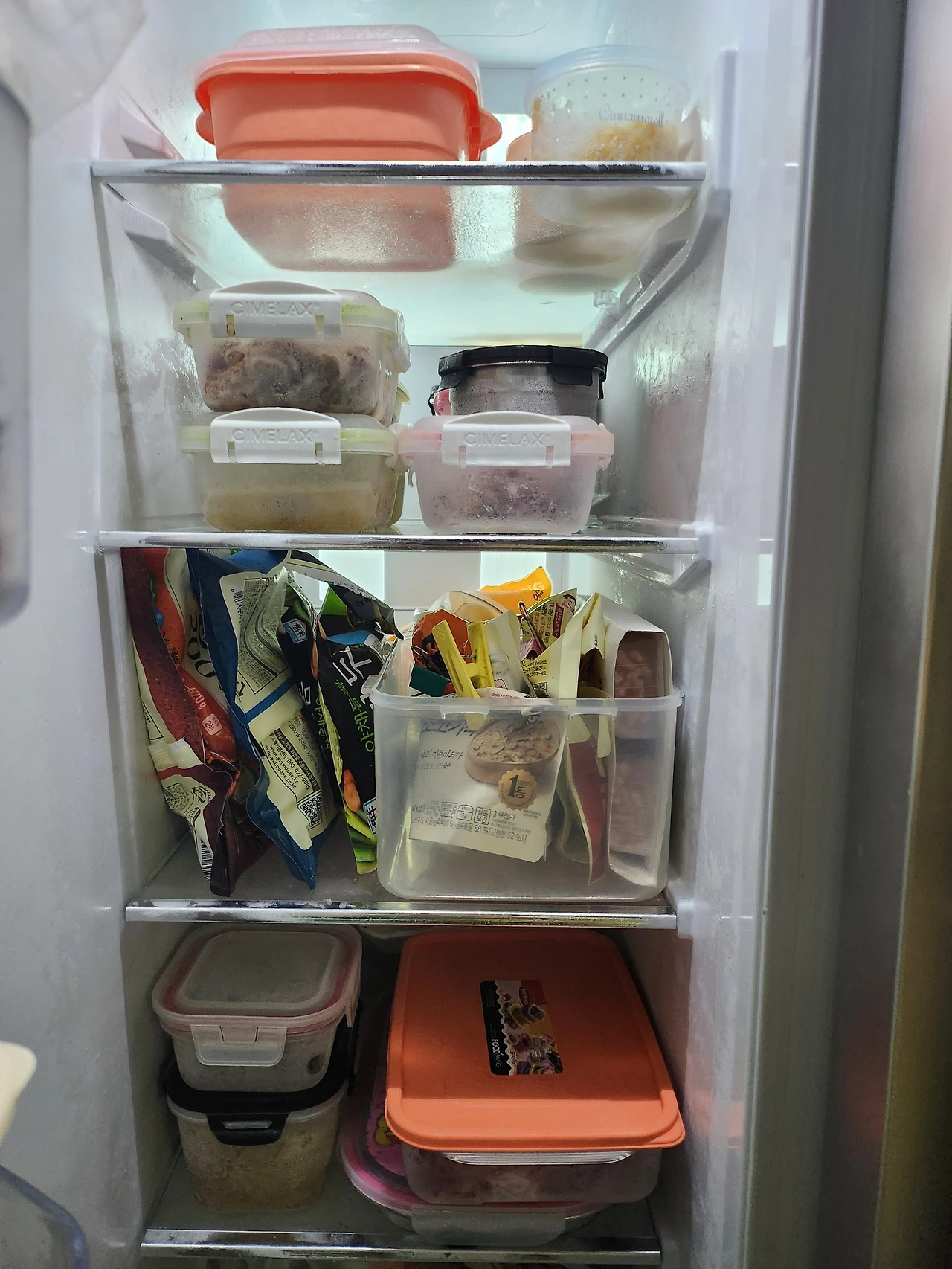 그래서 서둘러 냉동실 정리를 시작했다. 종류별로 고기류 한칸, 만들어서 얼려둔 음식 한칸, 인스턴트 음식 한 칸, 야채나 등등의 재료 두 칸이 나왔다. 그중에 만일을 위해 냉동실에 놓은 밥은 냉동실을 정리하고 바로 전자레인지에 돌려서 먹어버렸다.