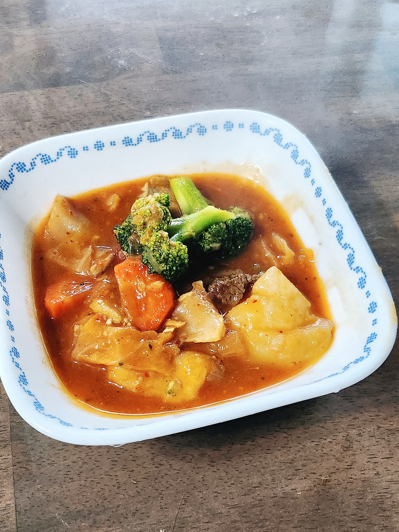 그리고 약한 불에 보글보글 끓였다. 그리고 한 입 맛을 보았다. '어? 설마 이 맛은!!' 거짓말 조금 보태서 삿포로에서 먹었던 커리 수프와 비슷했다. 지금 먹은 지 세 달이 넘어가고 있어서 맛을 조금 잊어버렸을 수도 있지만 비슷한 느낌이 맞았다. 게다가 청양고추와 고춧가루를 넣었더니 한국인 취향에 맞을 법한 커리 수프가 탄생한 것이다.