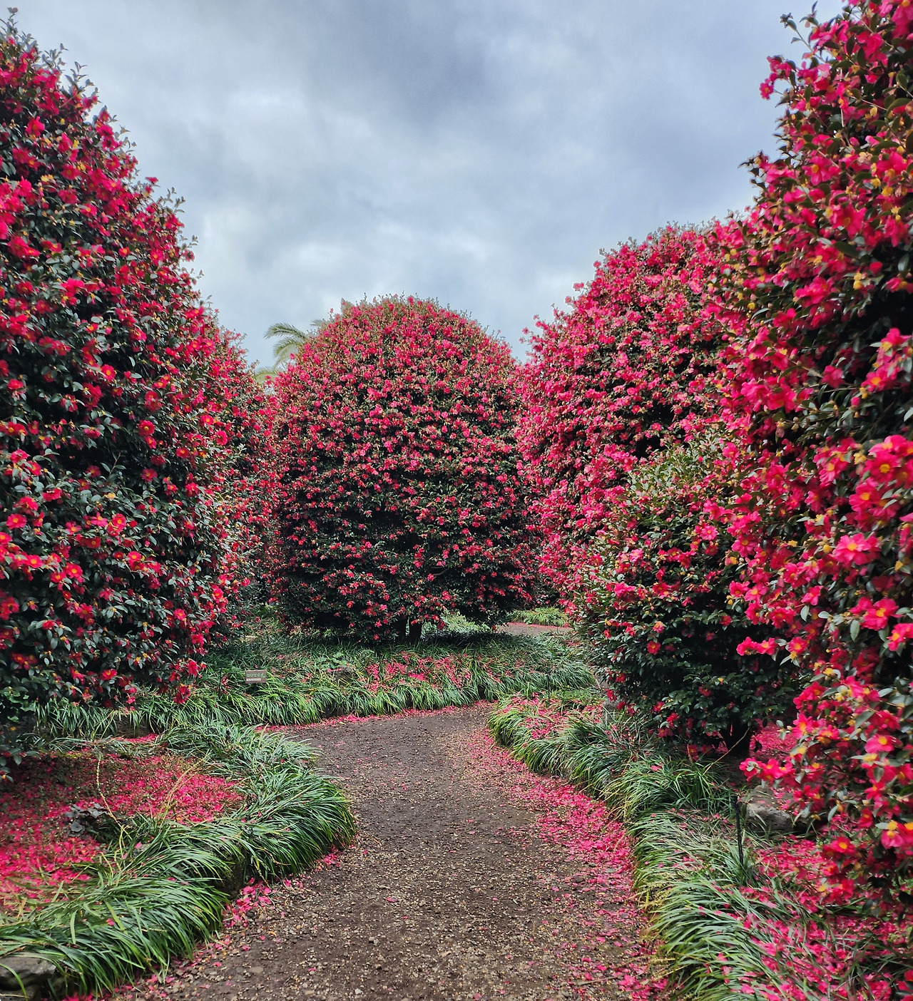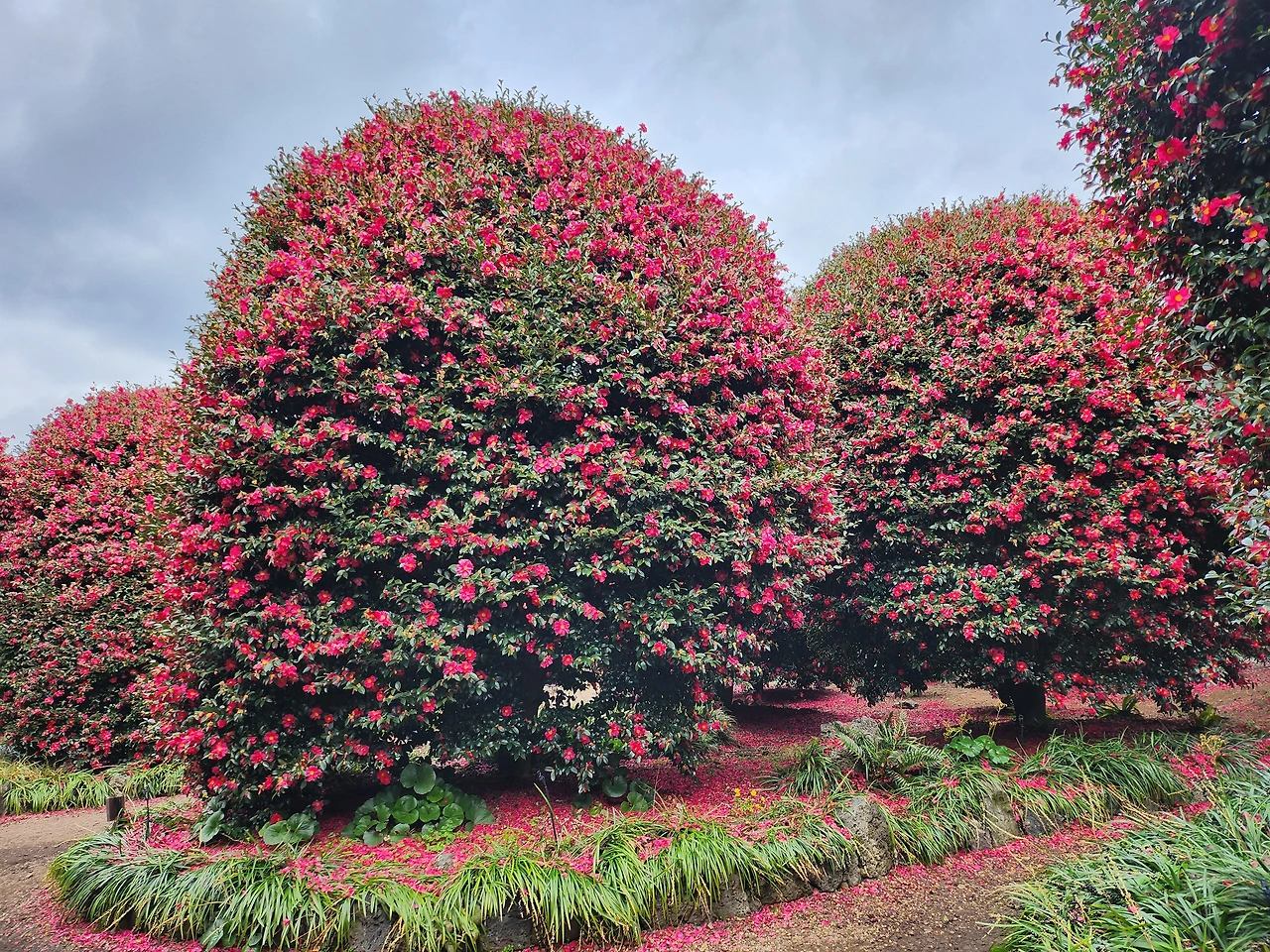 정말로 제주의 동백나무가 이곳에 모두 모여있는 것 같다. 활짝 핀 빨간 동백이 가득하다. 세상에나 동백나무가 이렇게나 크다니, 지천에 크고 작은 동백이 모여있다. 동백나무 사이를 걷는 기분이 참 황홀하다. 동백꽃을 보러 오길 참 잘했다.