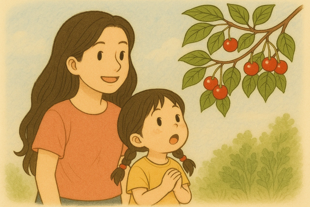 오늘은 드디어 아이가 태어나 처음으로 앵두나무를 보는 날이다. 오늘 앵두나무를 보면 신기하겠지?