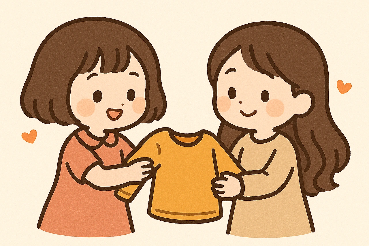 어릴 때부터 물려받는 것에 익숙한 아이는 각 집에서 다르게 쓰는 섬유유연제 향을 맡을 때마다 'oo 언니 냄새난다' 하면서 입는다. 그 모습을 볼 때마다 엄마는 왠지 모르게 뿌듯하다.