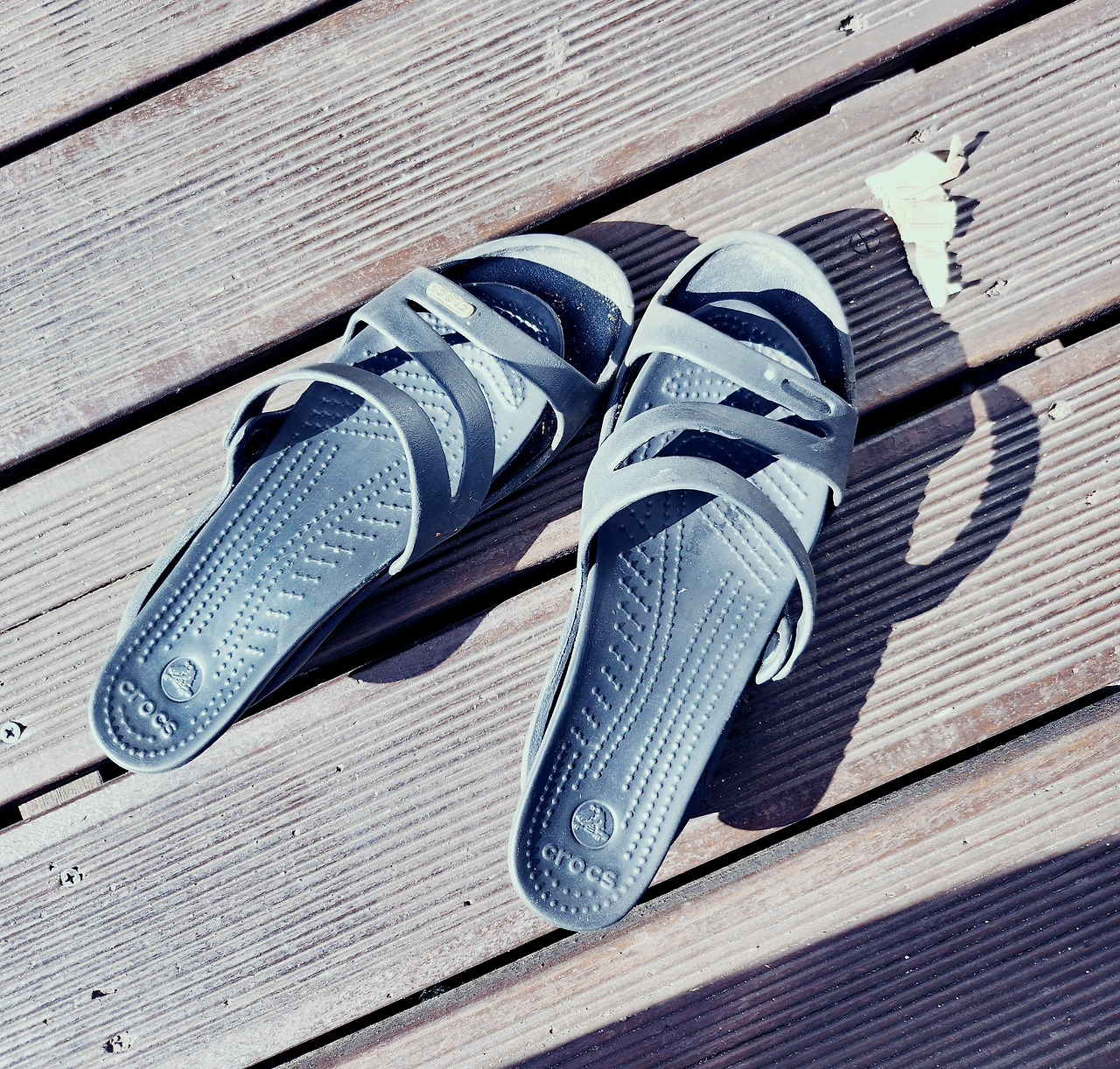 다른 망가진 신발은 크록스이다. 수 년동안 잘 신은 신발이다. 정말 이곳저곳에서도 엄청 잘 신고 여름이면 필수템이었다. 게다가 제주에 와서도 잘 신던 신발이었는데 얼마나 열심히 신었는지 밑창이 분리되고 말았다. 밑창이 분리되었으니 밑창을 버리고 신어볼까 생각했으니 밑창을 빼고 보니 너무 날것 그대로라 이것은 바로 버려야 할 것 같다.