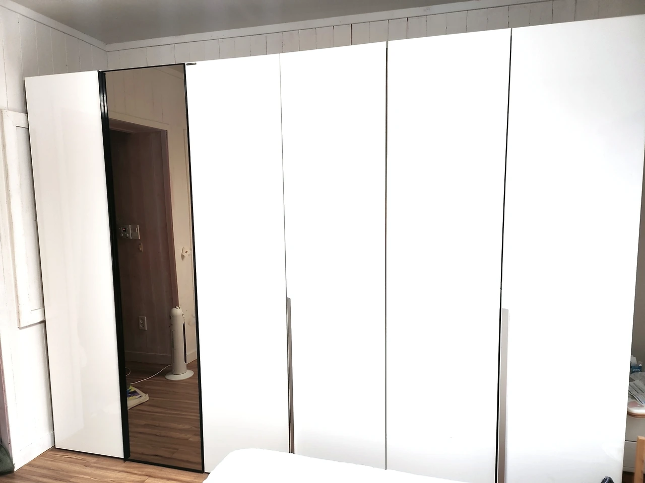 일단은 2층에 장롱이 많으니 침대를 넣고 공간이 조금 남던 안방의 한편에 넣었다. 덕분에 원래 그 장롱 뒤로는 창문이 있었는데 막혔다. 아마도 추운 겨울 바람막이 용으로 장롱을 쓴 느낌이었다. 게다가 바로 앞에 침대를 놓았더니 세 채인 장롱 중에 두 채는 침대에 문이 잘 열리지 않아 사용하기가 어려웠다. 할 수 없이 문이 활짝 열리는 장롱에 아이 옷만 넣어놓고 썼다. 그래도 그렇게 몇 년을 아주아주 잘 썼다.