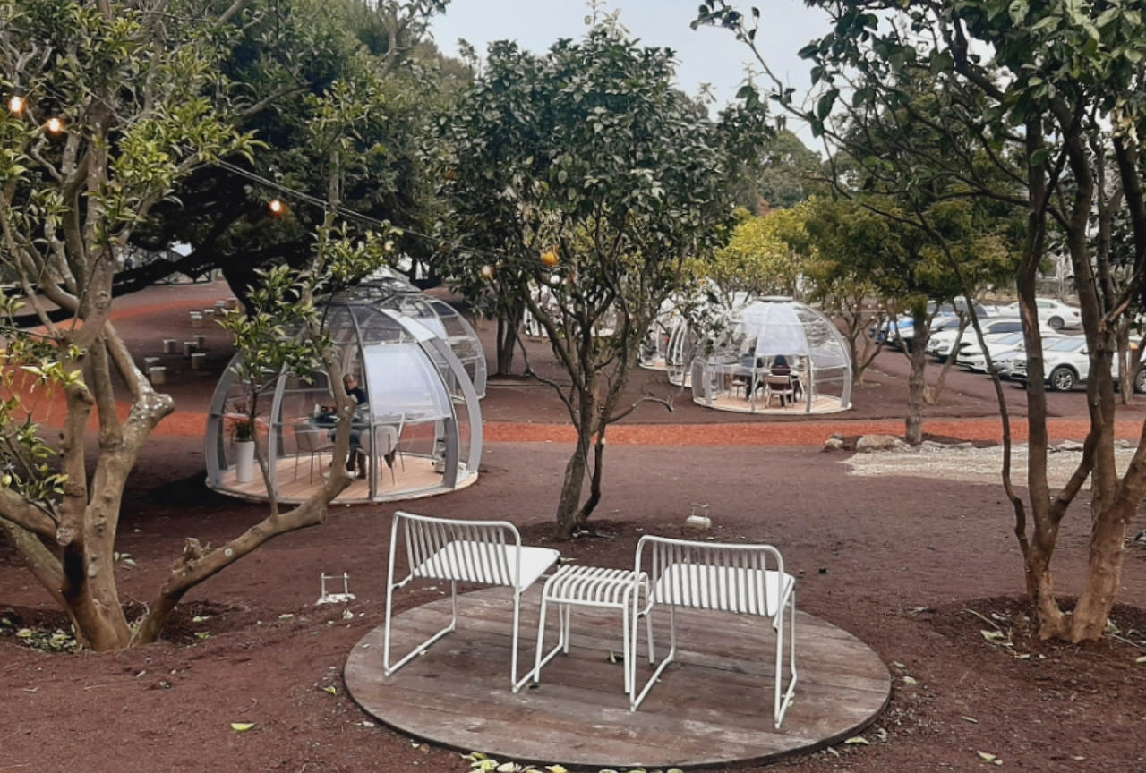 얼마 전에 다녀온 돔 모양의 카페는 정말 인상적이었다. 각자의 공간을 투명한 돔에서 지낼 수 있다. 이번에 갓 오픈한 가게였는데, 지금처럼 개인별로 지내야 하는 시간이 길어질수록 , 각자의 공간을 가진 그런 카페가 주목받을 것이다. 역시 나 말고 그런 생각을 하고 실천한 이가 있었다. 겨울 따뜻한 감성 난로를 돔 안에 넣어놓고 우린 안전하게 커피를 마실 수 있었다. 커피의 맛도 괜찮았는데 무엇보다 우리의 안전을 생각하는 카페라는 생각이 들었다.