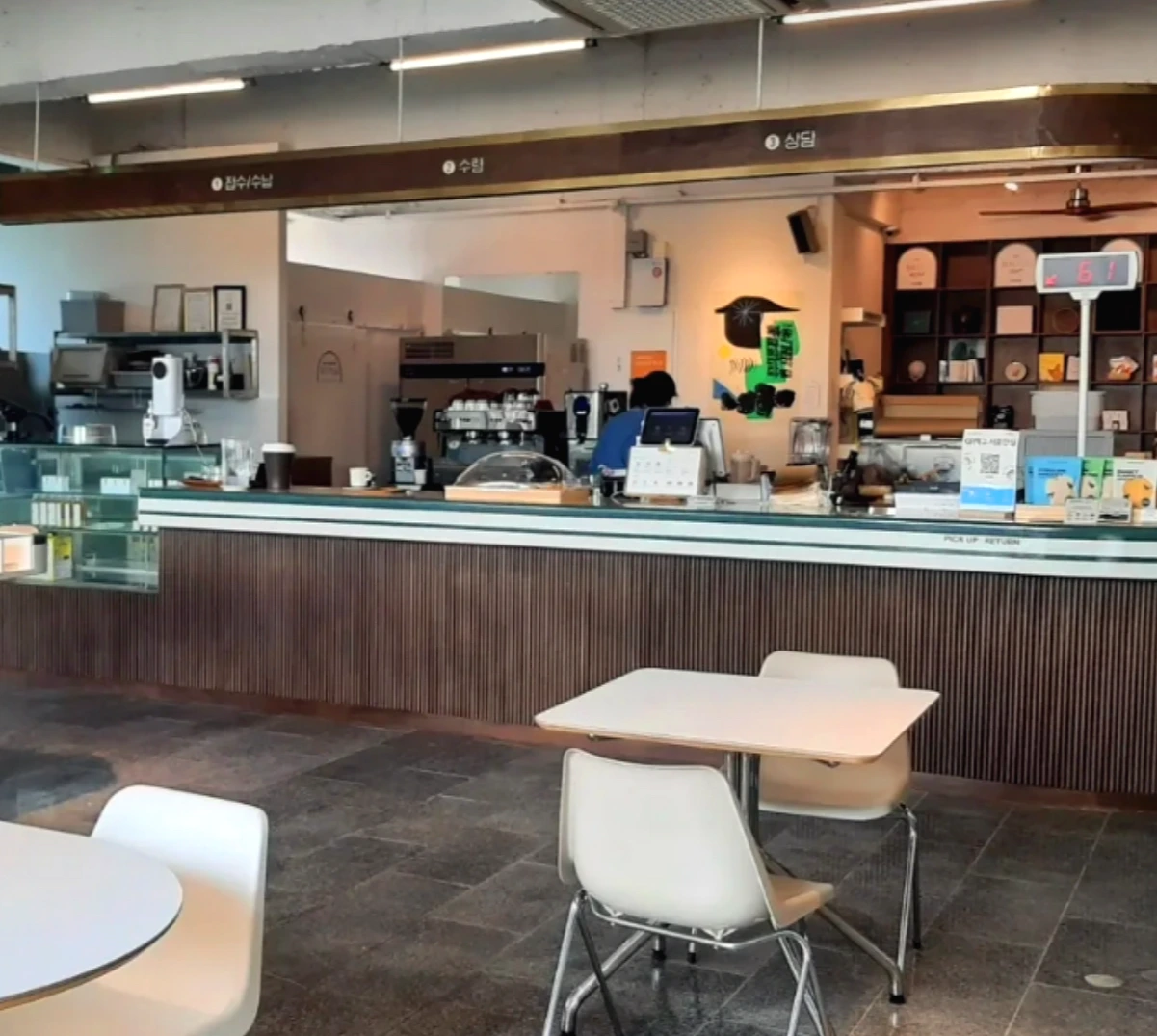 며칠 전엔 '농협'을 개조한 카페에 다녀왔다. 남편이 제주 관광 책에서 찾은 이색카페이다. 겉모습은 완전 농협이었는데 그 내부를 농협의 틀을 내버려 두고 카페로 바꾼 것이었다. 일단 메뉴를 주문하면 마치 은행에서 받는 것처럼 번호표를 받는다. 그리고 음료를 받을 차례가 되면 전광판에 그 번호가 나타난다. '띵동'하고 은행에서 울리는 소리가 그대로다. 카페에는 지점장실도 있다. 밖에 오픈된 카페 공간이 넓긴 한데, 지점장실에 들어가면 그곳에선 프라이빗하게 커피를 마실 수 있었다.