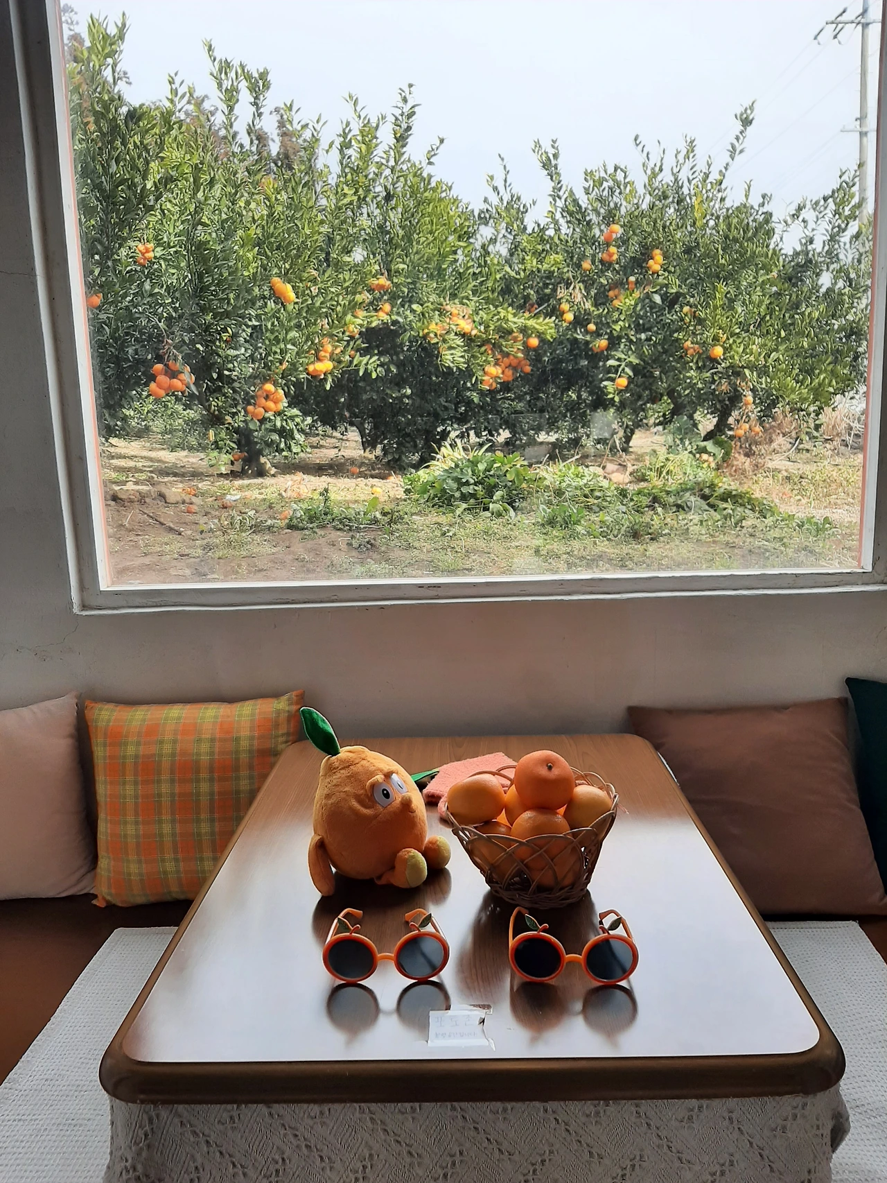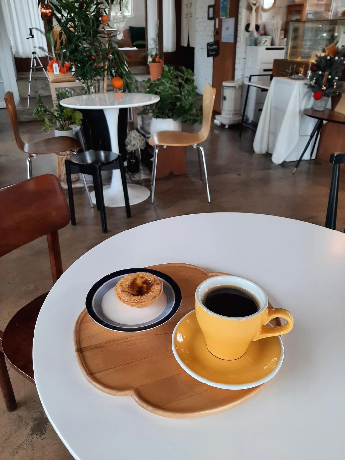 처음으로 주문해보는 메뉴, 밤 라테가 있었다. 달콤한 크림이 커피와 잘 어우러졌다. 함께 나온 에 그 타르트도 바삭바삭하니 참 맛있었다. 밖으로는 귤나무 농장이 있는데, 그곳과 함께 사진을 찍을 수 있도록 센스 있는 포토존이 만들어져 있었다. 우연히 찾아온 카페치고는 커피도 너무 맛있고, 제주 감성을 느낄 수 있는 카페여서 기분이 좋았다.