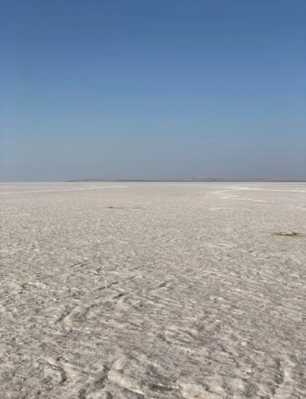 튀르키에의 수도 앙카라에서 카파도키아로 가는 길목에 위치한 소금 사막은 남미 볼리비아 우유니 사막에 이어 두 번째로 큰 사막이라고 한다. 제주도 크기만한 사막이라니 광활하지 않을 수 없다.