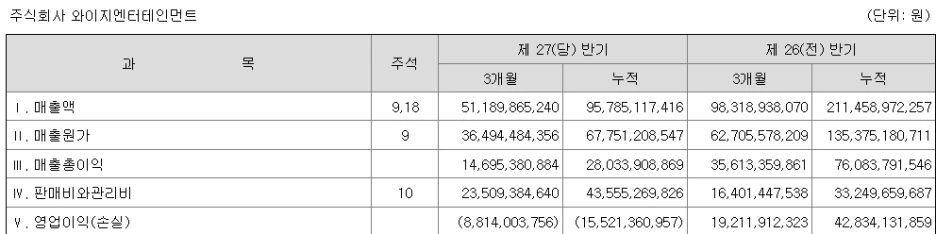 이렇다 할 블랙핑크의 그룹활동이 없는 올해의 YG엔터테인먼트 실적은 그다지 좋지 않을 수밖에 없습니다.