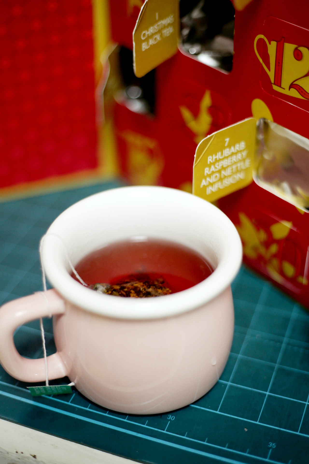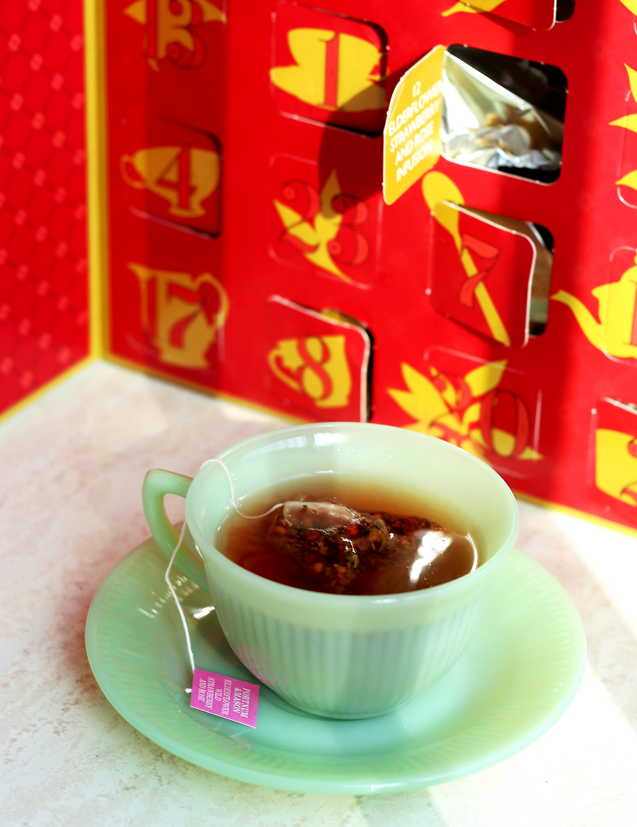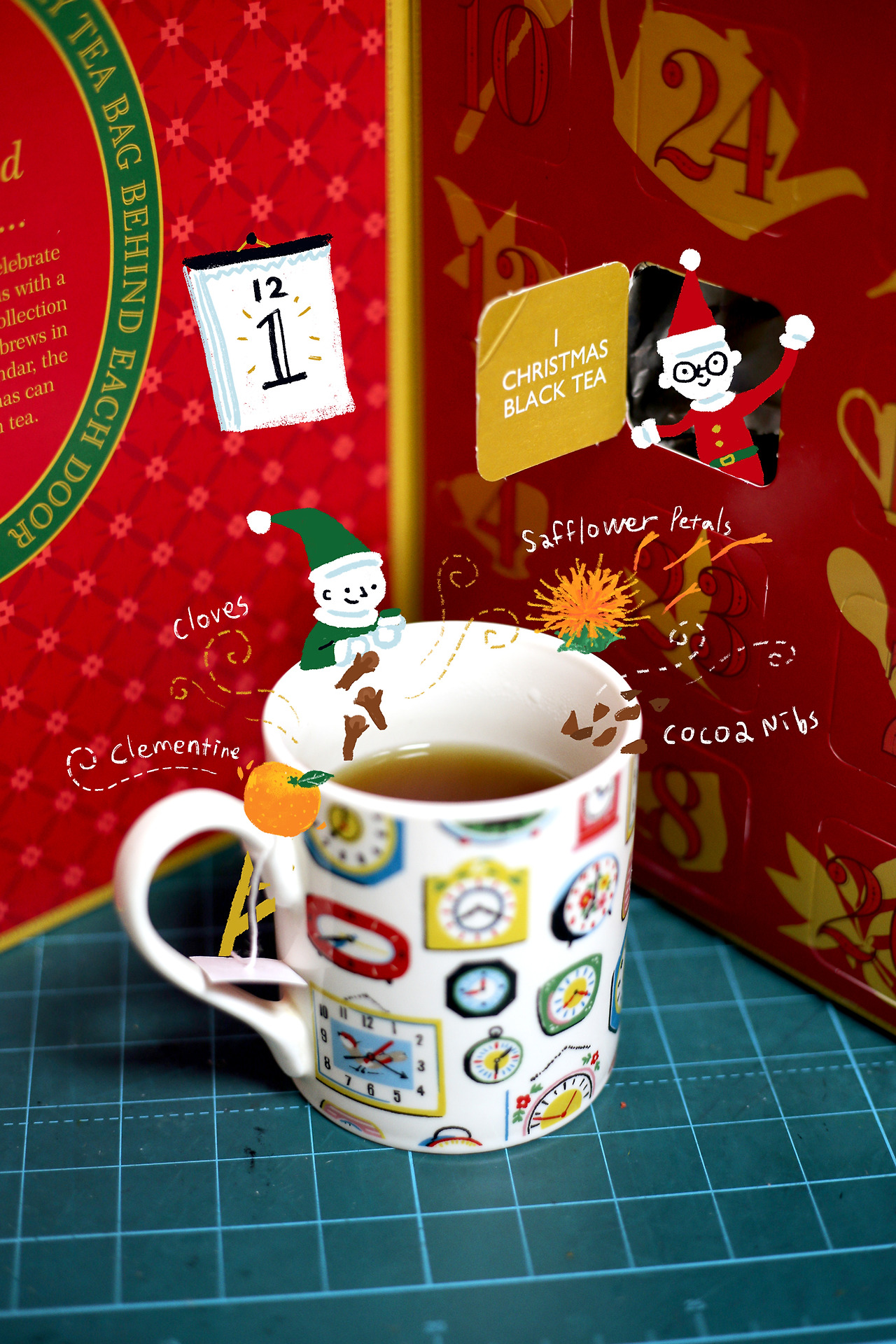 12월 1일의 차는 크리스마스 블랙 티. 티백에는 홍화꽃이 들어있어 너무 예뻤다. 정향과 클레멘타인(귤에 가까운 시트러스 계열의 과일인듯하다) 등 여러 가지 향신료 냄새가 나는 홍차. 1일부터 크리스마스 기분을 내라는 뜻일까? 벌써 두근거린다.