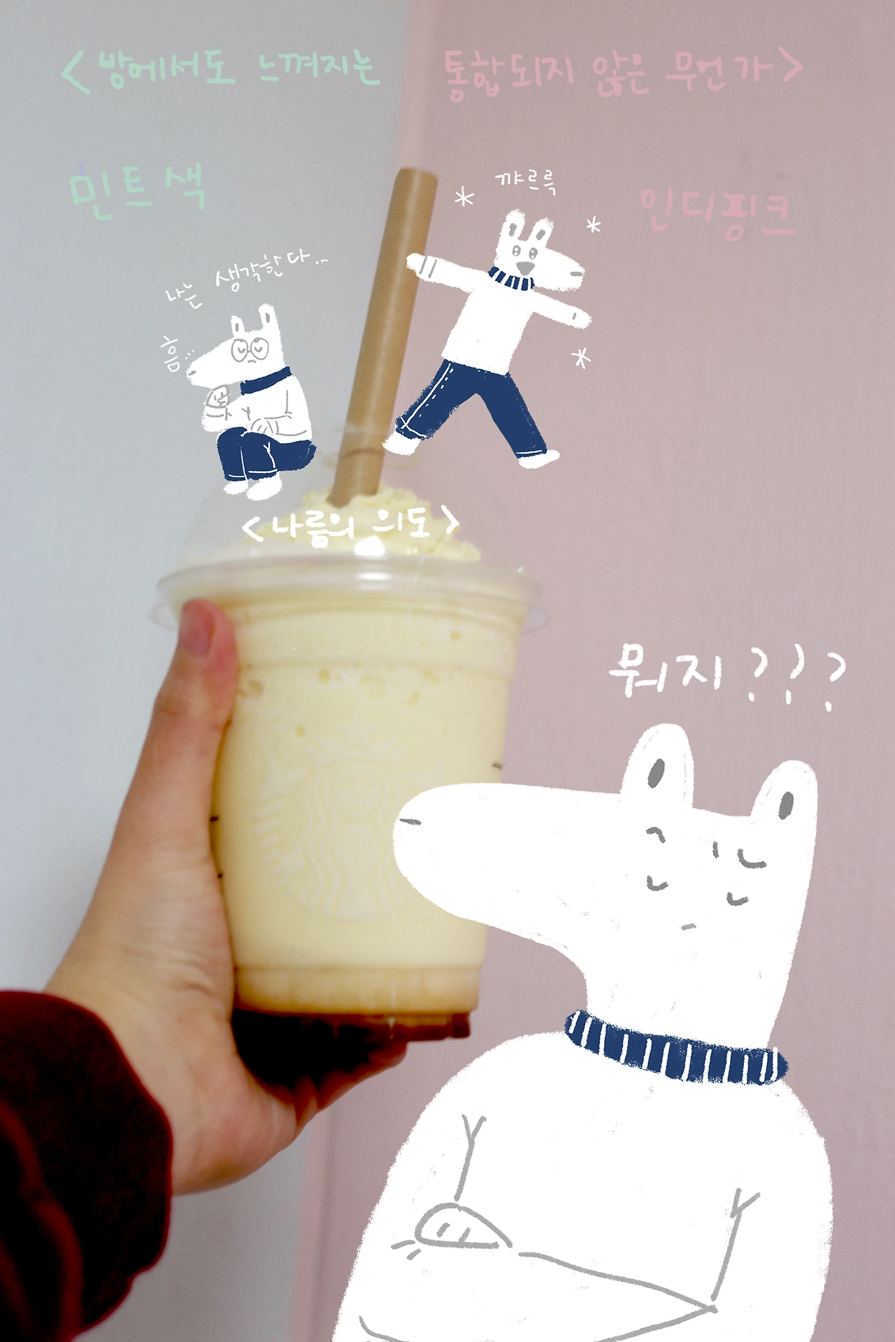 미용실을 나와서는 바로 아래층에 있는 스타벅스로 향했다. (거의 밖에 나오지 않으니 한번 나올 때 이렇게 계획적으로 루트를 세운다.) 쿠폰이 하나 있는데 유효기간이 얼마 남지 않았기 때문이다. 이번에 고른 메뉴는 슈크림 프라푸치노 위드 판나코타. 판나코타라는 바닐라맛 푸딩이 들어가 있는 프라푸치노다. 매년 요맘때쯤이면 슈크림이 들어간 메뉴가 잠깐 나왔다 단종이 된다. 예전에는 그래서 선물 받은 슈크림 라테 쿠폰이 있어도 메뉴가 단종이 돼서 쿠폰을 기한 내에 못쓸 뻔한 적이 있었다. 음료가 나오길 기다리면서 또 생각을 했다. 그러고 보니이래도 좋고 저래도 좋다니 나는 취향이란 게 딱히 없는 사람인가? 쓸데없이 취향의 스펙트럼이 너무 넓었다. 알록달록한 장식물, 오래된 건물 금이 간 벽 그 틈 사이, 녹슨 철 이런 걸 보는 걸 좋아하다가도 단색, 무채색, 네모, 직선으로 된 건물을 보는 것도 좋아한다. 뭐지. 내 취향을 하나로 통합하는 게 너무 어렵다. 그림을 그리면서도 그래서 나의 색깔이나 특징 같은 게 별로 없나 싶어 고민이 많았더랬다. every thing is nothing이라는 말은 이런 뜻으로 쓰인 말은 아닐 텐데. 나는 대체 뭐지? 또 그런 생각을 하던 중 음료가 나왔다. 그래. 왜 슈크림이 들어간 메뉴는 상시 있는 메뉴가 아닌 거지? 사실 여기에 있는 메뉴 아무래도 상관없이 있으면 다 마시겠지만, 슈크림이 들어간 메뉴가 있다면 난 그걸 마실 거야. 그래 취향이 아예 없는 건 아닐 거야. 그래도 한편으로 좋게 생각하기로 했다. 내 취향의 스펙트럼이 넓기 때문에 이런저런 시도도 해볼 수 있는 거라고. 이런저런 신메뉴도, 이런저런 머리 색이나 모양도. 나와 안 어울릴진 몰라도 내가 재밌으면 그만이다. 갑자기 신이 난다. 또 어떤 재밌는 걸 해볼까?