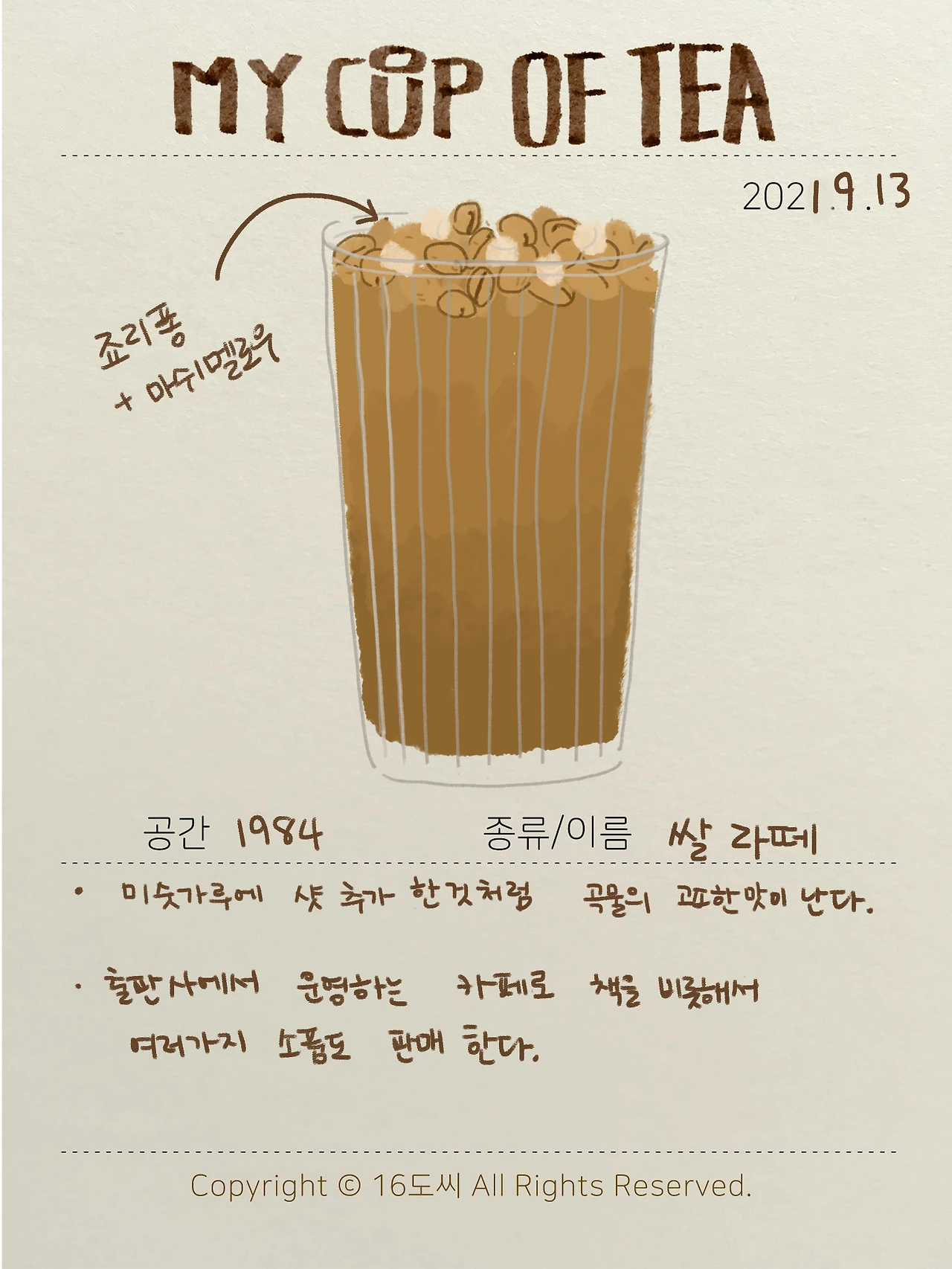 첫 번째로 방문한 곳은 홍대 쪽에 있는 카페 1984. 음료도 음료지만 힙한 분위기의 소품도 함께 진열되어있었다. 나중에 알고 보니 이곳은 출판사에서 운영하는 곳이라고 한다.