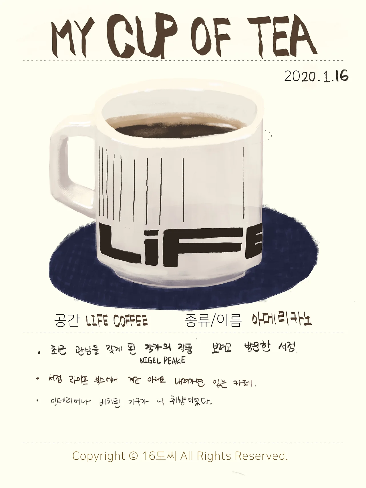 서점의 지하에는 카페가 있었다. 구매한 것들을 포장하는 동안 그곳에서 커피를 마시고 있었다.