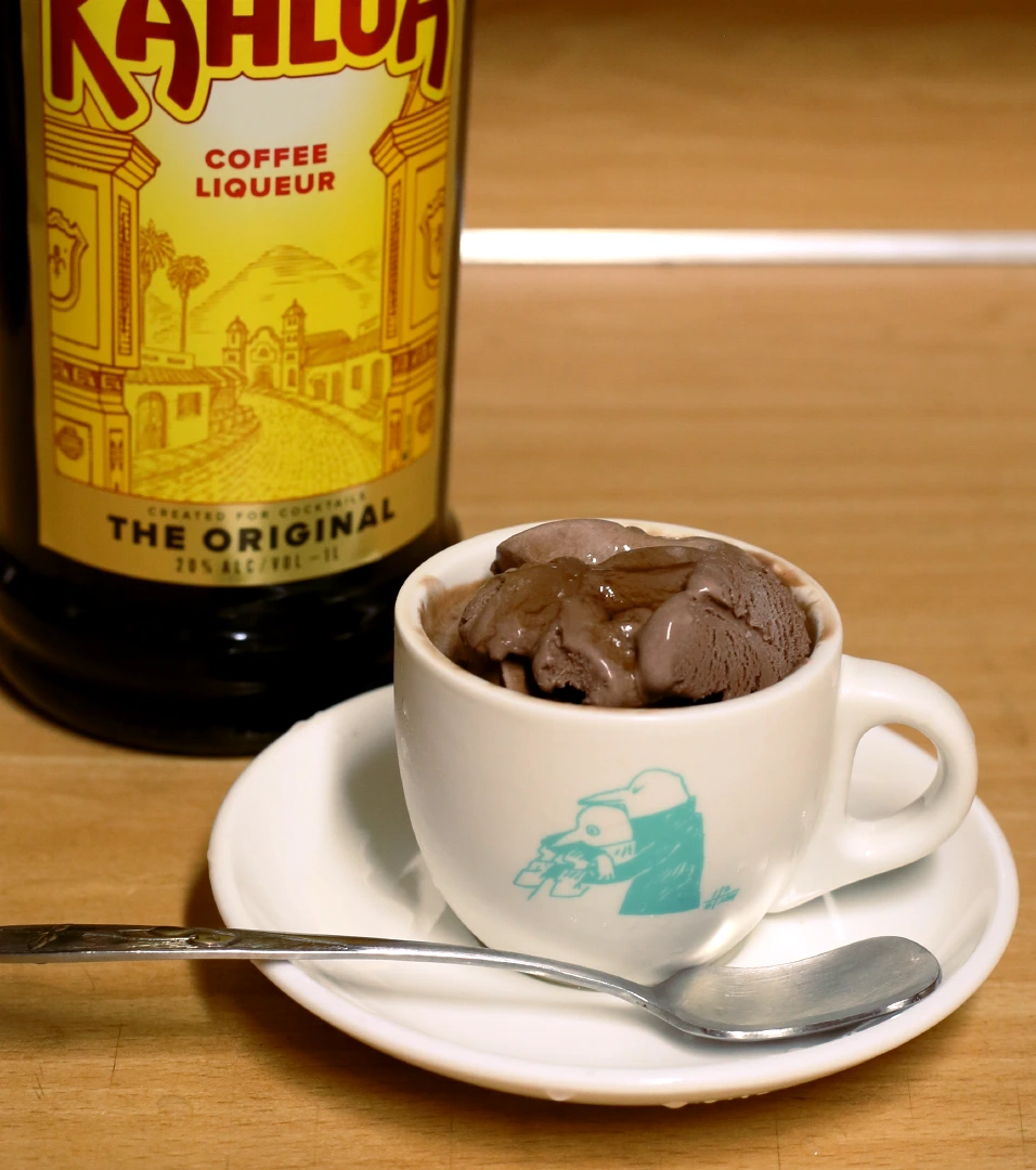 하지만 나는 으른이니까 초콜릿 아이스크림에 깔루아를 조금 부었다.(여기에 생크림을 추가하면 더 맛있다)