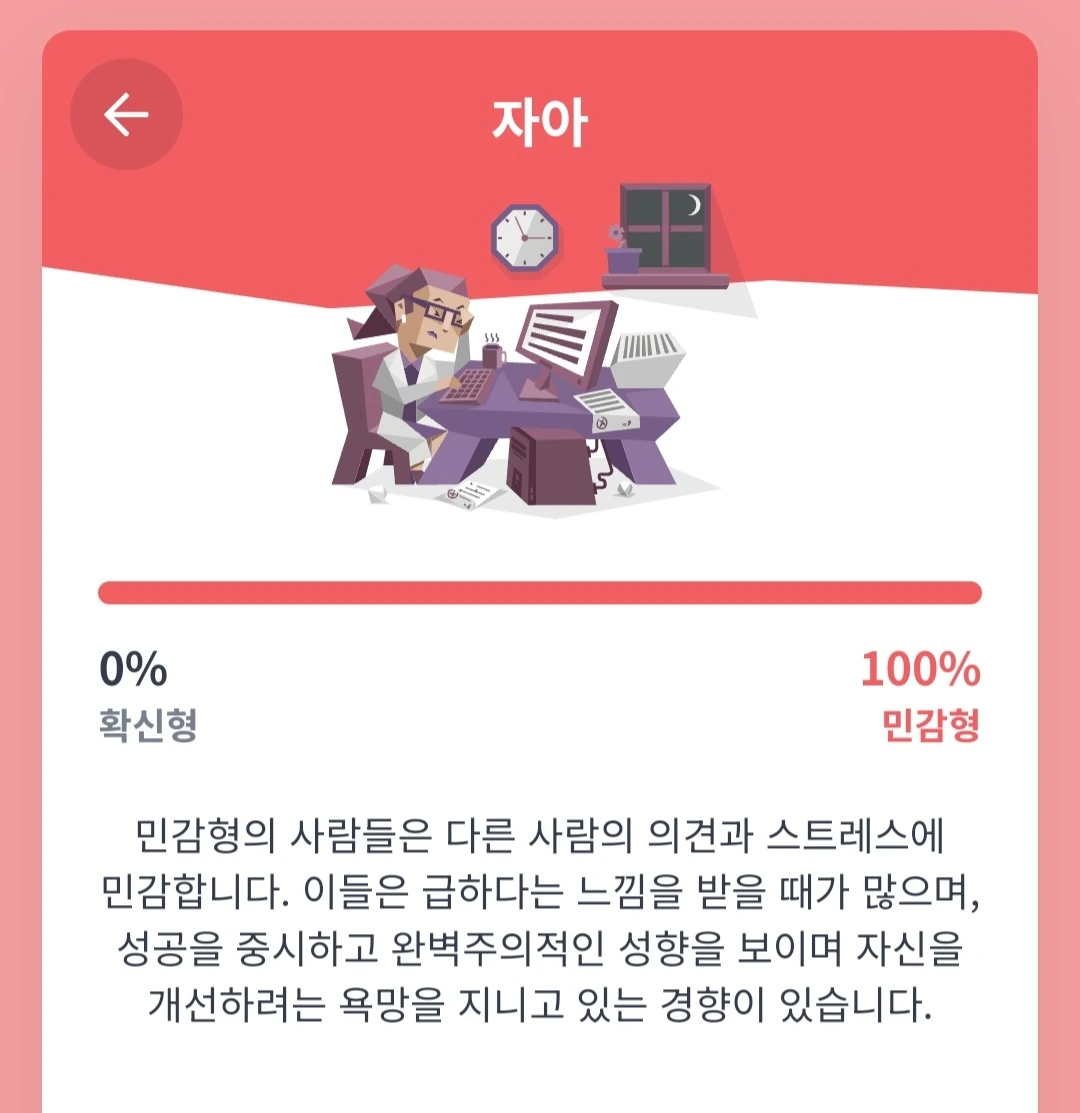 MBTI에서 피드백에 영향을 많이 받으며, 자존감 척도를 가늠할 수 있는 영역은 감정형(F)/이성형(T)이 아닌 확신형(A)/민감형(T)다.