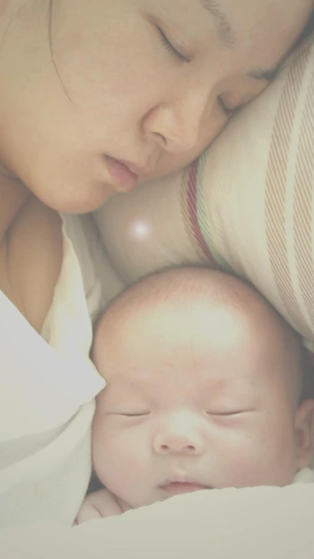 나는 침대에 모로 누운 아내의 품 안에서 잠든 아기를 봅니다.