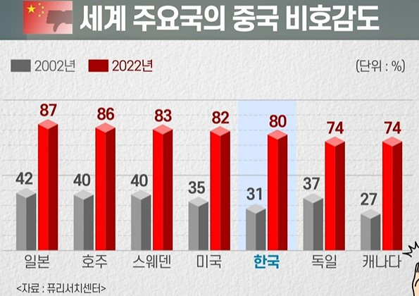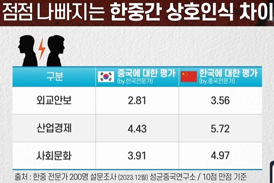 - 상호인식이 악화된 이유 ┖ 중국에 대한 비호감도: 코로나 사태, 홍콩 보안법 파동, 신장 위구르지역의 인권문제 등으로 인한 세계적 현상 ┖ 세계 주요 14개국 국민의 중국에 대한 비호감도 조사: 70% 이상 비호감, 한국은 80% - 중국인들의 한국에 대한 인식은 상대적으로 우호적 ┖ 단, 중국의 MZ 세대가 한국을 우호적이라 평가한 비율은 42% - 한국과 중국의 반중, 반한 정서는 양국의 MZ 세대가 주도하고 있음 ┖ 코로나 기간 동안 경험의 교류가 없었고, 특히 국가 자부심이 매우 강한 MZ 세대들이 주도하고 있다고 볼 수 있음 ┖ MZ 세대들은 인터넷이나 SNS 등을 통해서 반한, 반중 콘텐츠의 상업화에 취약하게 노출 ┖ (예) 중국 유투버가 김치의 기원과 관련하여 한중 문화 갈등을 자극하거나, 한국 유투버가 ‘중국 이제 곧 붕괴된다’하는 식의 과격한 중국 때리기와 같은 콘텐츠를 통해서 클릭수 유도 → 언론을 타고 사회 전반의 부정적인 분위기로 확산 - 중국에 대한 관심이 크게 줄고 있고 중국 연구 환경도 크게 악화되고 있음 ┖ 중국어를 배우는 사람이 줄면서 중국 관련 교사도 배출하지 못하는 상황이 현실적으로 나타남 - 미중 경쟁전략 와중에도 미국에서 중국 연구에 대한 관심은 오히려 증폭하고 있는 점은 살펴볼 필요가 있음 - 중국은 우리에게 변수(變數)가 아닌 상수(常數) ┖ 중국에 기회가 있고 시장이 있다면, 중국으로부터 오는 위험을 분산해야 한다면 더욱더 철저하게 중국을 이해하고 파고들어야 함