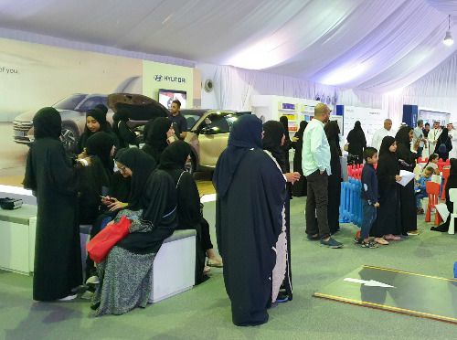 <자동차 회사 모임에 참석한 여성들 - 변경된 형태의 아바야 (제다)>