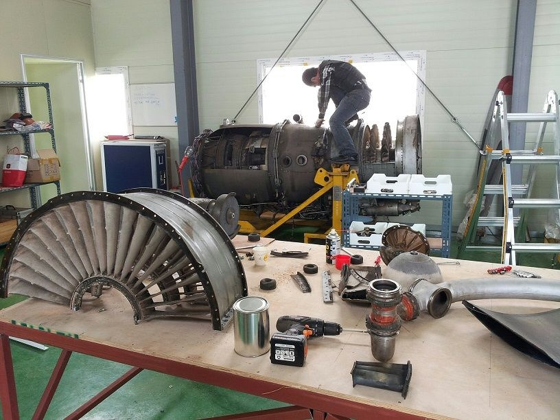 논산 공장에서 항공기 엔진 분해작업중