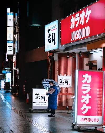 한 번은 오사카에서 가라오케바를 갔다. 단일건물이 거의 20층 높이인데 그 모든 곳이 전부 가라오케 술집이었다. 무턱대고 엘리베이터를 타서 보니 한글 간판이 있어 그곳에 내렸다. 그곳의 가라오케 술집은 대부분이 그리 크지 않았고 대부분 여자 점주가 혼자서 운영하고 있었다. 그곳에서 한 군데를 들어갔다. 상호가 한글로 쓰인 곳이니 분명 한국인이 하는 술집이려니 하고 들어간 곳이다.