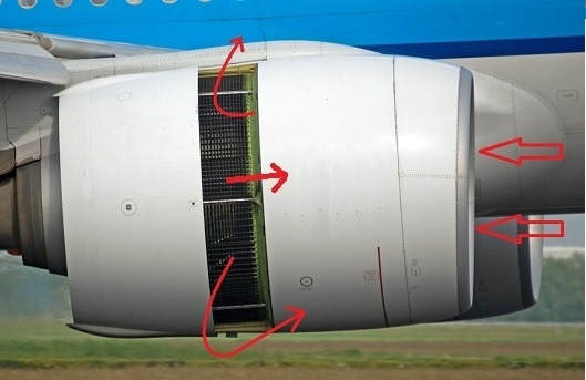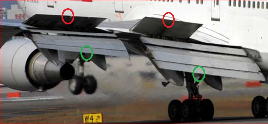 물론 스포일러 만으로 수백 톤에 달하는 대형 민간 여객기가 갑자기 속도를 극적으로 감속시킬 수는 없다. 다른 기능을 더 추가해서 항공기 감속을 유도한다. 착륙 시에 이와 별도로 엔진 역 추진 (engine reverse) 파워를 가동한다. 수십 초간 순간적으로 작동되는 엔진의 역추진력이 분출된다. 이는 항상 후방으로 분출되는 엔진 분사의 방향을 착륙 시 역으로 분출 방향을 바꾸어 작동시키는 프로세스이다.
