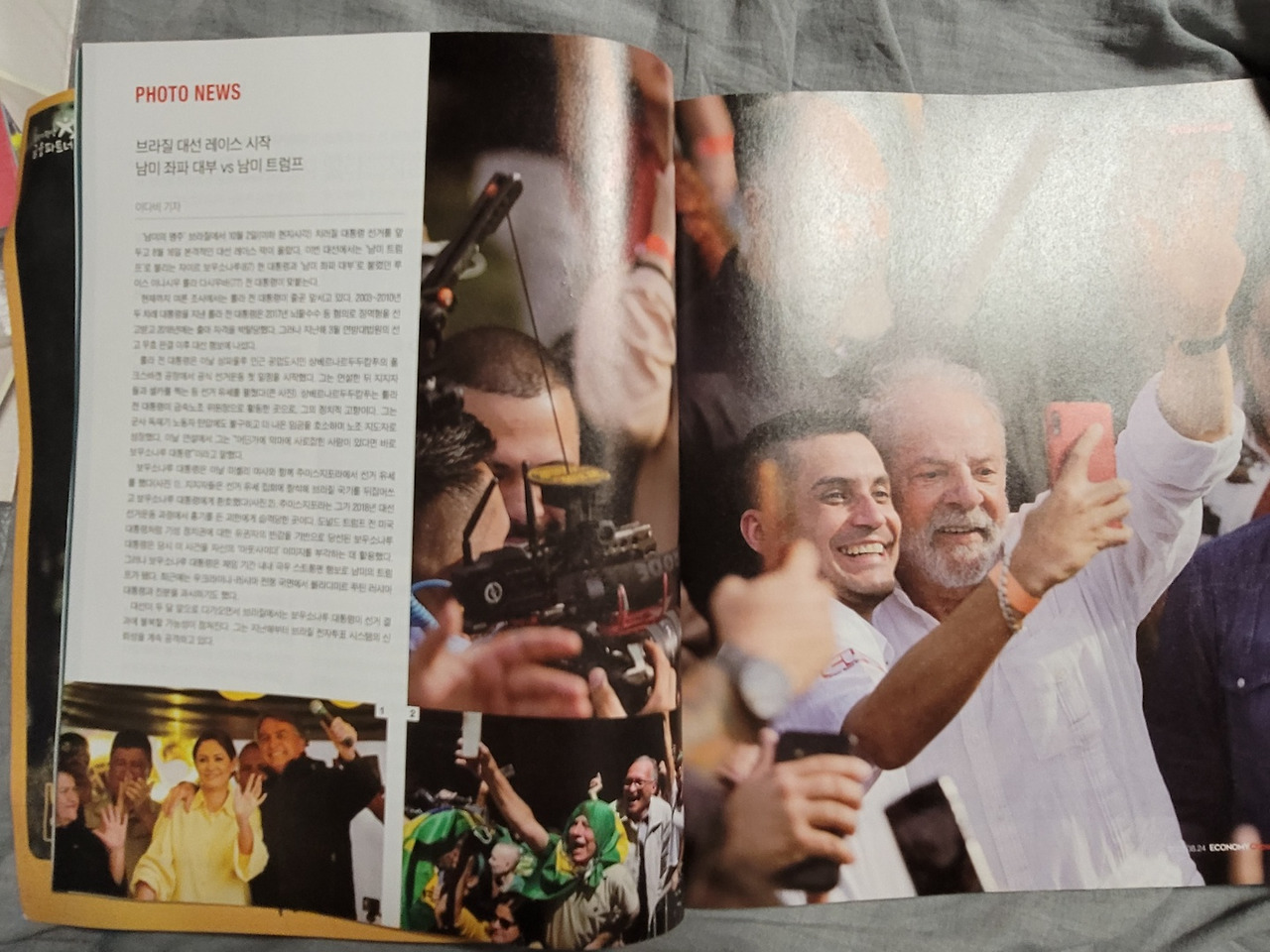 다음 페이지에선 '포토뉴스'라는 형식으로 브라질 대선 이슈를 다루고 있습니다. 성공적인 사회개혁을 이뤄냈다는 평가를 받는 진보 성향의 룰라 후보와, 극우 성향의 보우소나루 후보의 경쟁을 다룹니다. 이처럼 세계 각국의 소식도 접할 수 있고요.