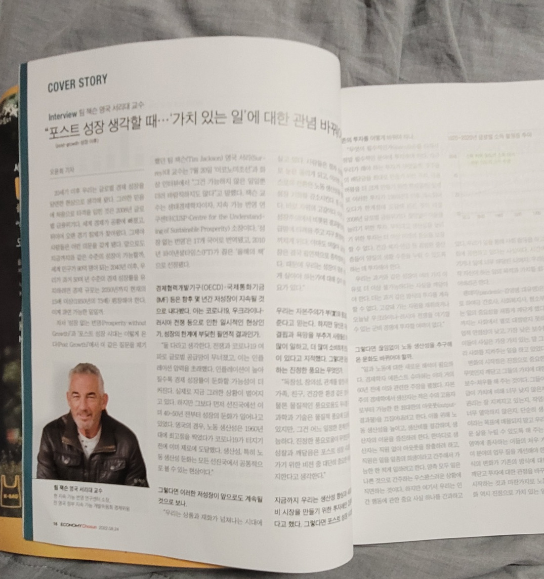 그 뒤로도 '가치있는 일에 대한 관념 바꿔야', '성장이 우리를 행복하게 만든다는 신화에서 벗어나라' 같은 탈성장 전문가들의 인터뷰들이 이어집니다.