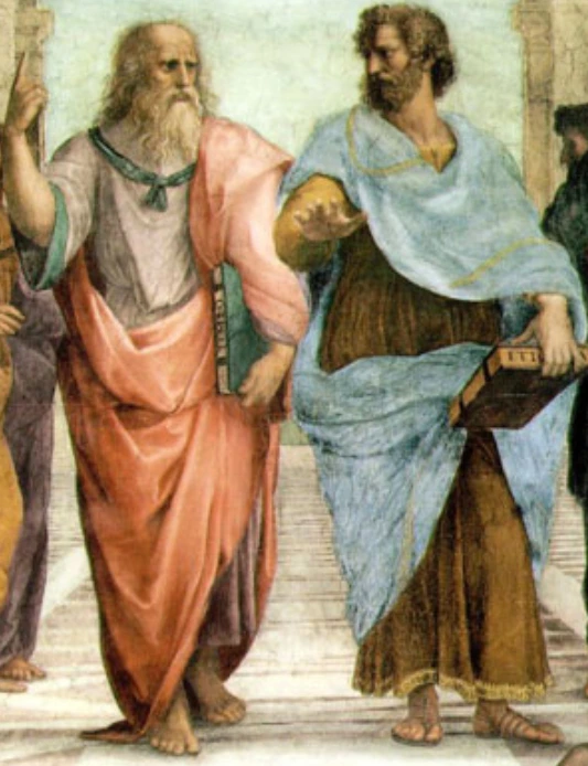 피엘로의 그림 <아테네 학당>을 살펴보자. 플라톤은 손가락으로 하늘을 가리키고 아리스토텔레스의 손바닥은 땅을 향한다.