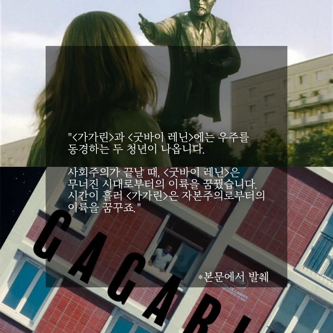 사회주의가 끝나던 시절 <굿바이레닌>은 실패한 시대로부터의 이륙을 꿈꿨습니다. 시간이 흘러 <가가린>은 자본주의의 파괴로부터 이륙을 꿈꿉니다.