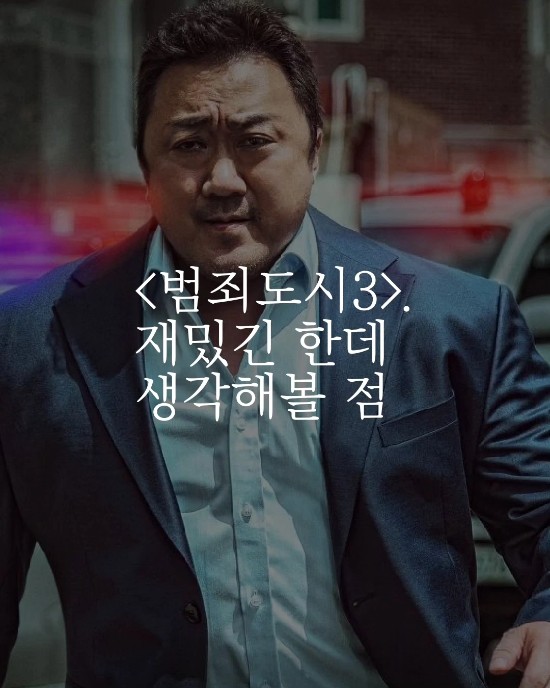 자신의 언행이 어떤 결과를 낳을지 고민할 때, 우리는 보다 성숙해진다. 웃긴 영화는 많다. 웃기다는 사실만으로 범죄도시의 미성숙함이 정당화돼서는 안 된다. 한국의 콘텐츠를 세계가 본다. 이제 범죄도시 시리즈는 조금 사려깊어질 때도 됐다.