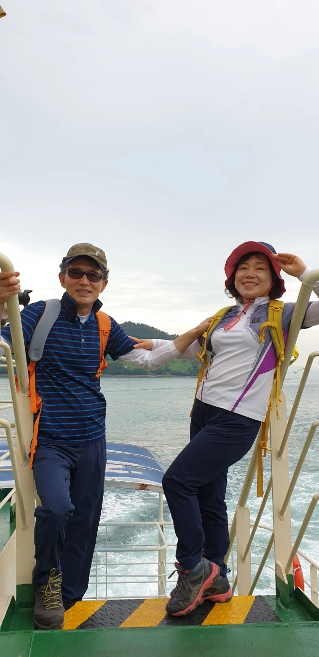 새벽 3시 출발 영산, 섬진강 휴게소에서 신선한 공기를 마셨다 일출을 보며 가을 문턱에 성큼 다가온 들판을 보며 백야도에 도착했다. 사방이 아담한 산과 섬으로 둘러싸인 마을 아래 어부의 집들이 옹기종기 이침을 맞이하고 있다. 갈매기의 안내를 받으며 고깃배들이 분주히 항구를 벗어나 만선의 부푼 꿈을 꾸며 달린다. 얼큰한 황태 콩나물국을 먹고 개도 가는 유람선을 탔다. 개도는 봉화봉, 천제봉이 개의 귀를 닮았다고 한다. 새우깡을 던져도 갈매기가 오지 않아 안달이 났다. "흥 백야도는 새우깡보다 더 맛있는 물고기가 많다고요" 하며 비아냥거린다. 낯선 곳의 세계란 항상 신비하고 경이롭다. 겹겹이 보이는 섬들이 마음의 고향인 양 편안하다. 하늘에 잔뜩 구름은 끼었지만 손에 닿일듯이 가까이 보여 더욱 좋고 산행하기 좋은 날씨다. 산행인들의 발자취가 적어서 인지 정비가 되어있지 않고 울창한 나무와 숲으로 우거져 있었다. 337미터 높이의 봉화산과 다시 내려가서 338미터의 천제봉 정상에 올랐다. 산과 바다가 조화롭게 어울리는 바다의 풍경에 푹 빠져본다. 삼거리 그늘에서 점심을 먹고 해변가를 걸었다. 개도도가에서 달달한 막걸리를 마시고 여석선착장 도착, 환상적인 섬 산행을 마무리했다. 광양에서 하산주로 무한 리필 고기로 푸짐하게 먹고 차에 올랐댜. 돌아오는 차창을 바라보니 바다를 닮은 푸른 하늘에 흰구름 섬이 떠 있었다. '서로 마주 보고 있으면 닮아진다지' 그렇게 바다와 하늘은 닮아가고 있었다.