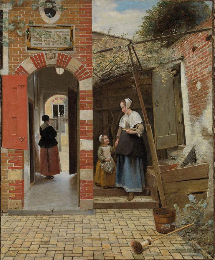 - <델프트에 있는 어느 집의 안뜰> 피터르 데 호흐. 런던국립미술관