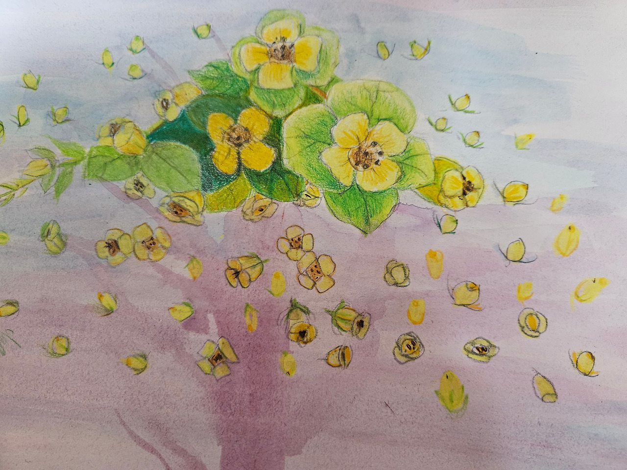 감나무 가지를 흔들며 노란 감꽃을 바구니에 담고 있던 꿈 많은 봄처녀였던 그녀는 사랑스러운 눈빛으로 감나무 마을 동네 사람들과 늘 함께 즐겁고 행복한 나날을 살아가고 있었다