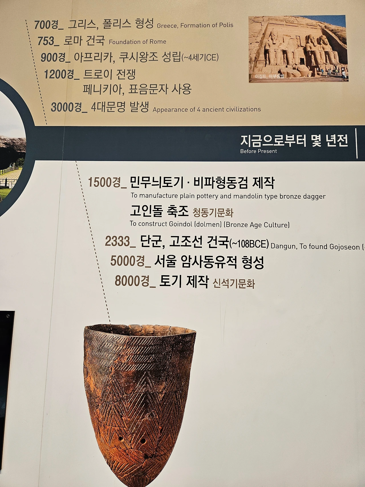 한반도의 역사는 한강유역에 정착한 신석기인들이 5000년 보다 더 오래전 8000년의 역사를 거슬러 올라가서 토기를 만들어 사용했다는 것이고 그것이 한반도의 유구한 역사의 시작이 아닌가 생각이 든다