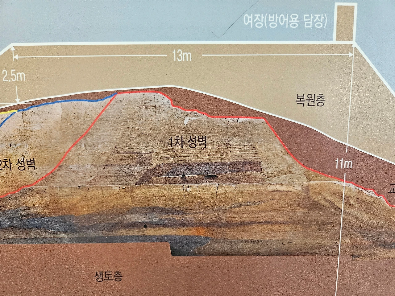 한성백제의 토기와 도기, 자기를 감상하고 나서 흙을 다져서 쌓은 토성을 보니 한반도에서 우리 민족의 역사가 이렇게 오래된 줄 몰랐다 5000년의 역사와 문화를 지닌 한반도인 줄 알고 있었는데 훨씬 더 오래전 국가가 형성되기 전부터 토기를 구워서 사용한 흔적들이 보였다