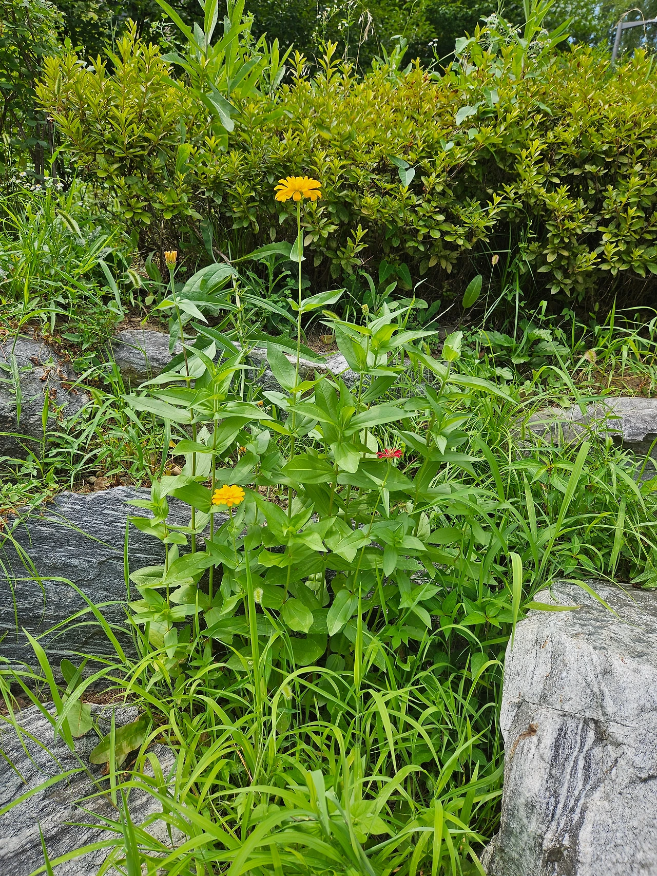 다음날 시들어가던 강아지풀들이 백일홍에게 자리를 양보하며 이사 간 돌틈 사이에서 다시 살아나고 있었다