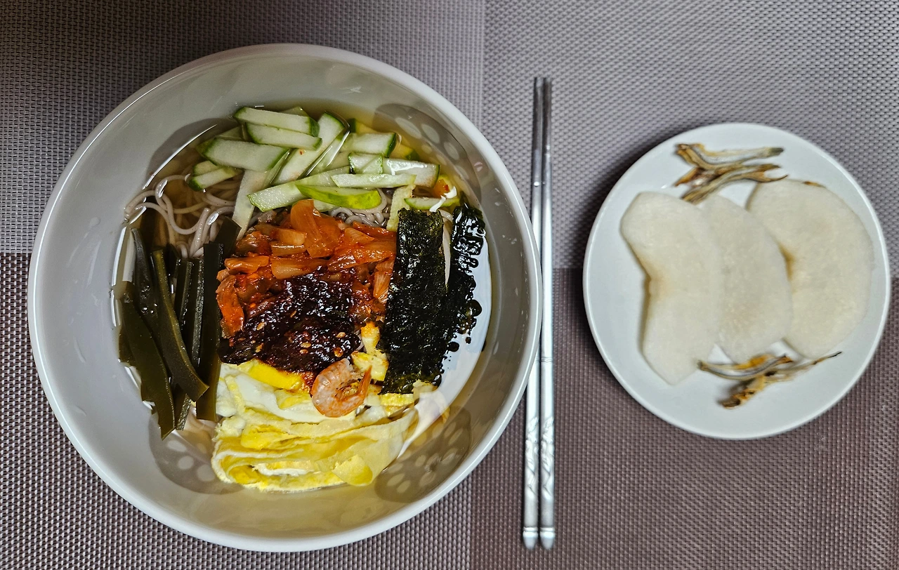 다시마멸치육수에 말아먹는 메밀국수로 실버부부들이