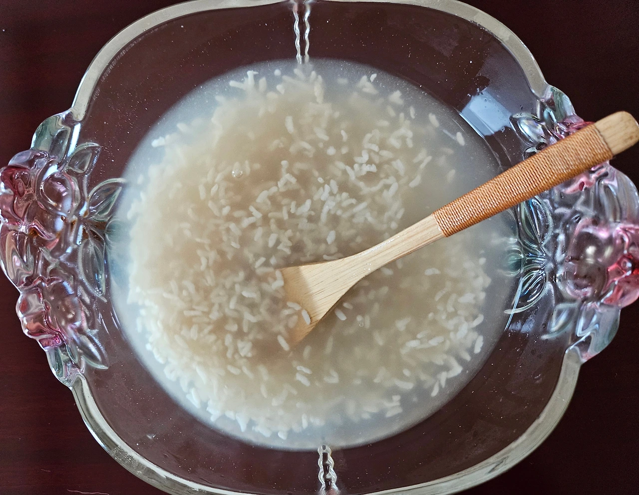 1. 찹쌀 한 공기(500g을 볼에 넣고 밥 할 때 쌀 씻듯이 서너 번 맑은 물이 날 때까지 씻어서 생수물을 부은 채로 찹쌀을 1~2 시간 불린다
