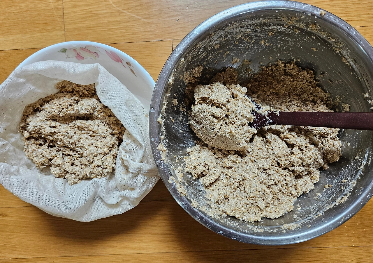 13. 엿기름삼배(배) 주머니를 큰 국자로 조심스레 건져내어 그릇이나 볼에 담아둔다