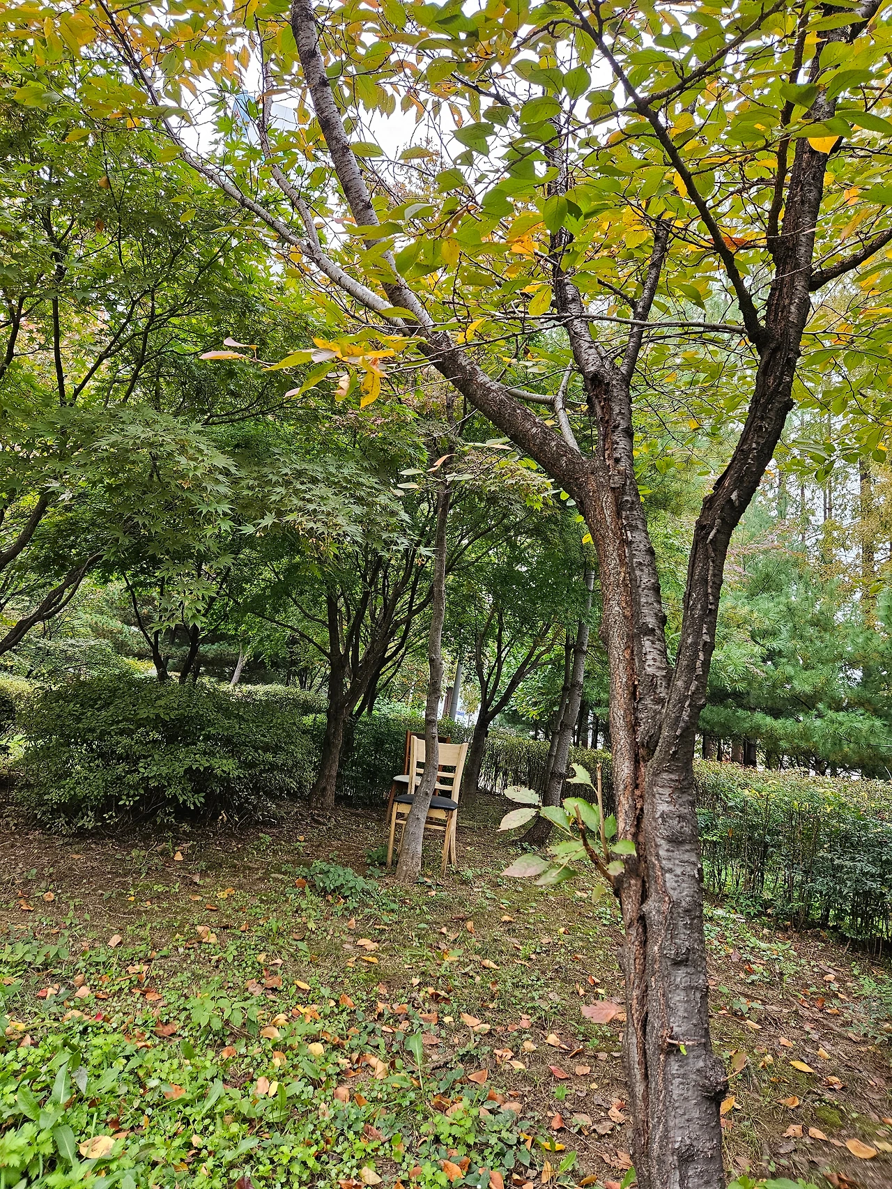초록 잎이 더 많이 남아있는 단풍나무들은