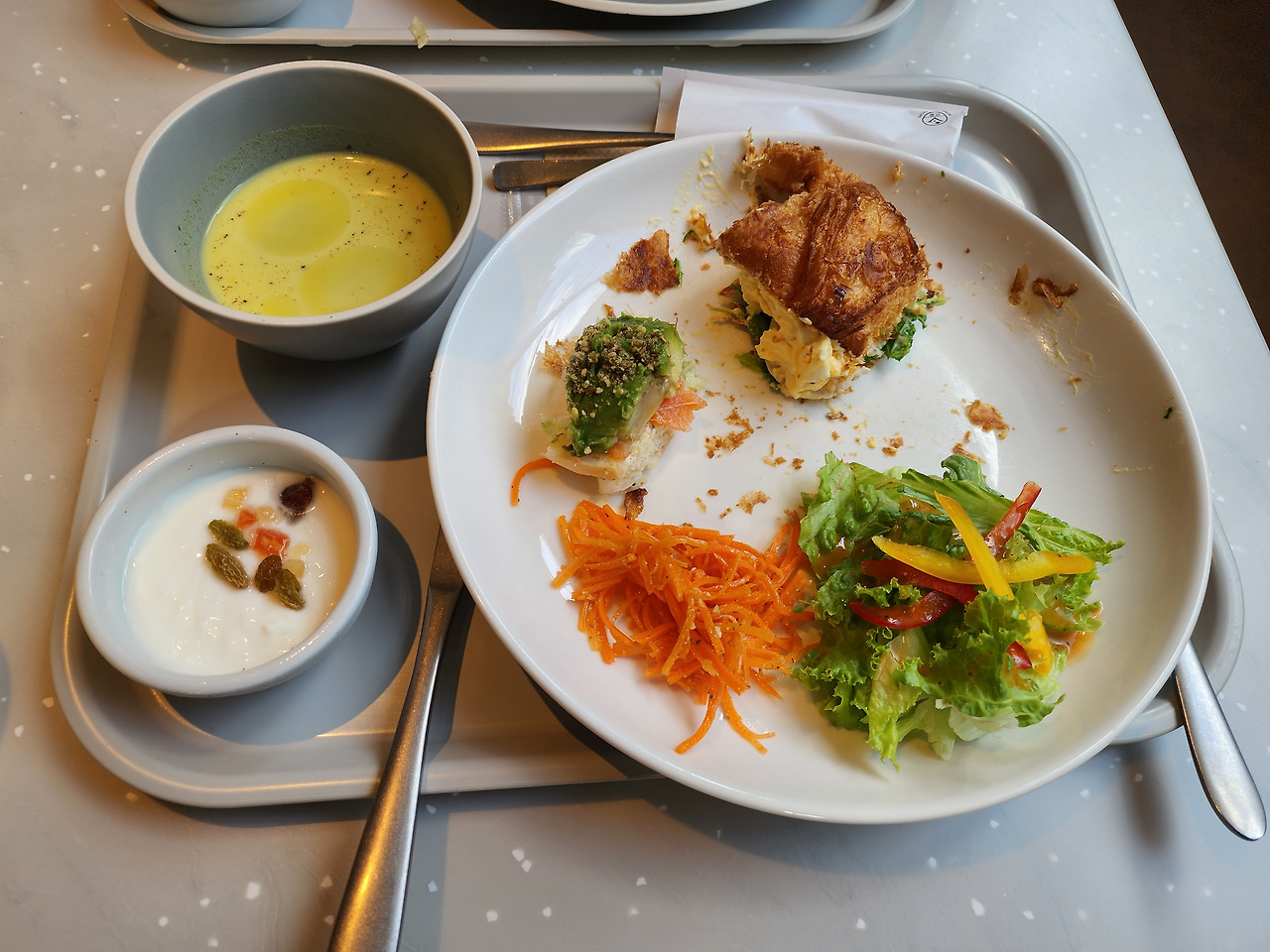 보고도 믿을 수 없었던 양이었다. 양이 너~~~~~~~~~~~~~무 적었다. 맛도 "우와~~~"가 아니라, "아...." 소리가 나올 정도의 맛 그 이상도 그 이하도 아니었다. 보통 호텔 조식이라 함은, 낫토도 있고. 그런 걸 생각했었는데, 그거를 생각하고 가면 큰 오산~ 뭐든지 한쪽을 얻으면 다른 한쪽을 잃는다고 했던가? 이 호텔의 입지, 위생, 서비스 등은 나무랄 데가 없이 좋았지만, 조식 하나가 실망스러웠다. 그 단 한 가지가 우리에게는 어마어마하게 중요한 거였으니..ㅠㅠ