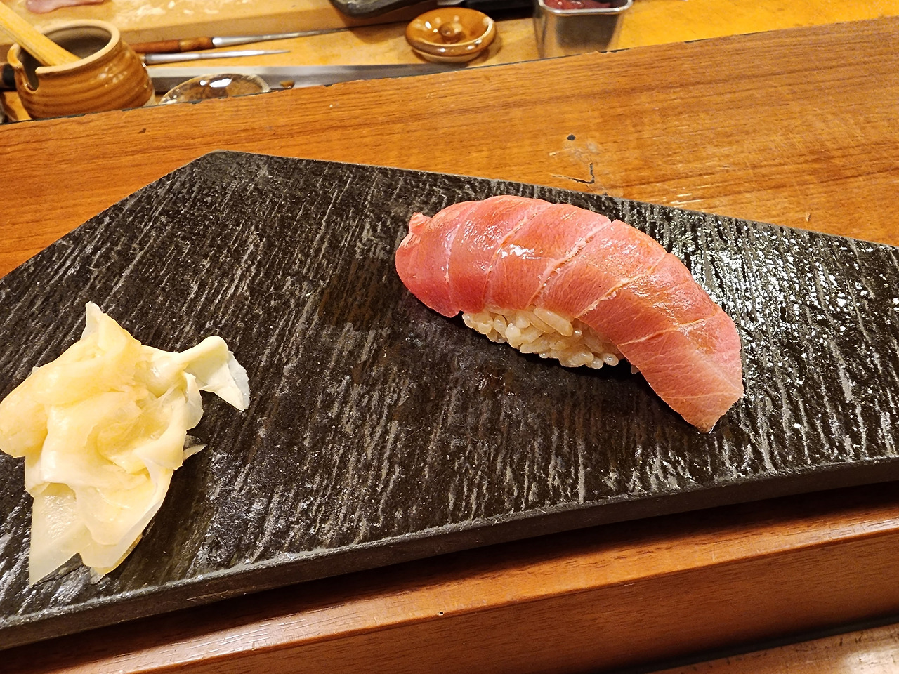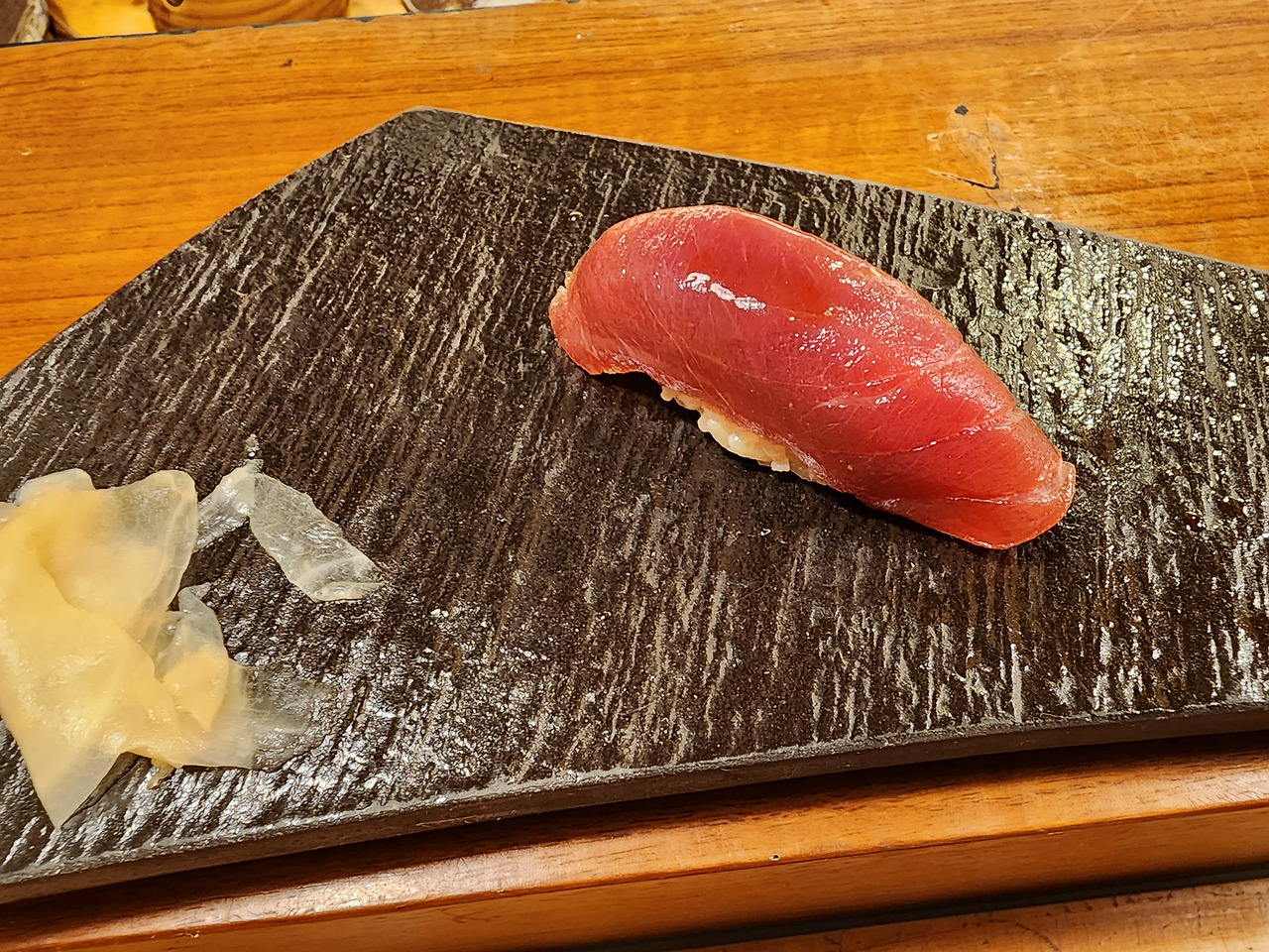 그렇게 한참을 먹은 후, 셰프가 제일 맛에 많았던 초밥을 말하면 서비스로 하나 더 만들어주겠다고 하셔서, 나와 진은 두말할 필요 없이, 참치 뱃살을 주문하였다.