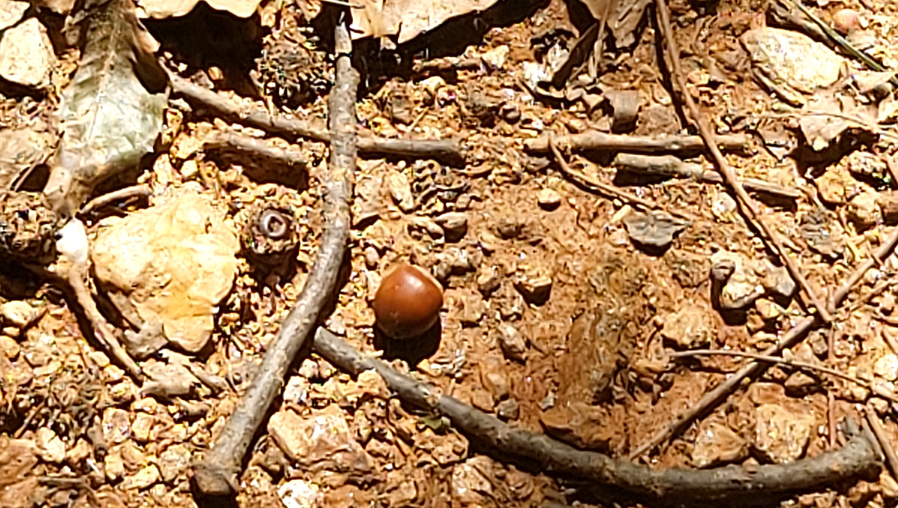 숲사이 만들어진 작은 오솔길에 보물같은 도토리가 예쁘게 떨어져 있다.